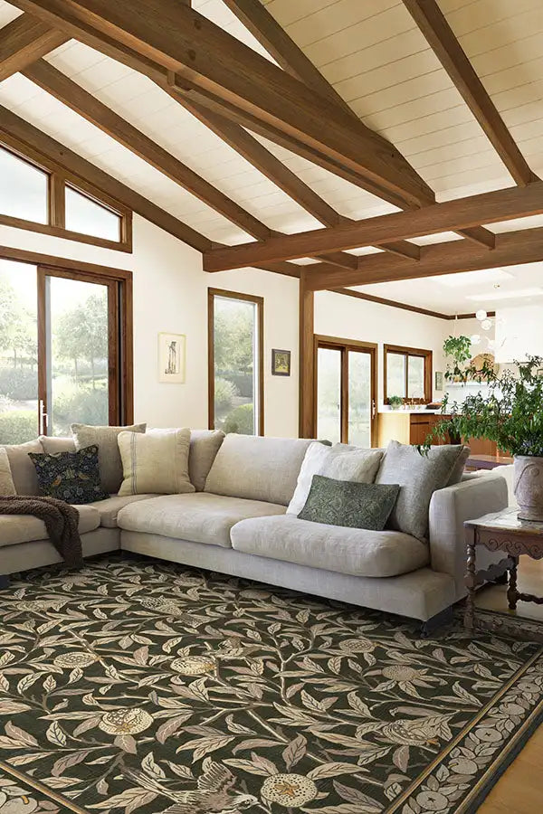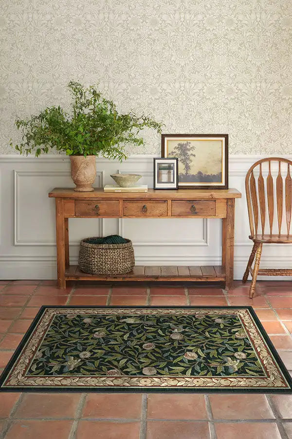 Bird Pomegranate Teal Green Living Room Rugs William Morris Art Carpet Farmhouse Carpet Bedroom Art Deco Rug Washable Carpet