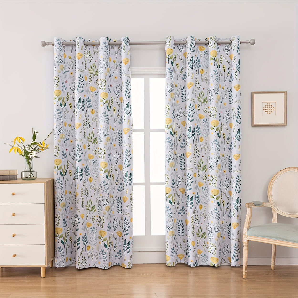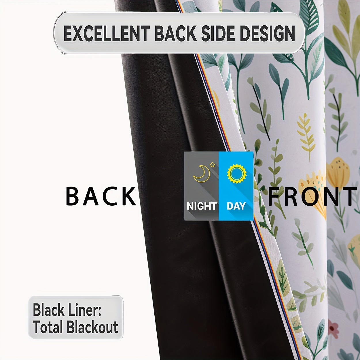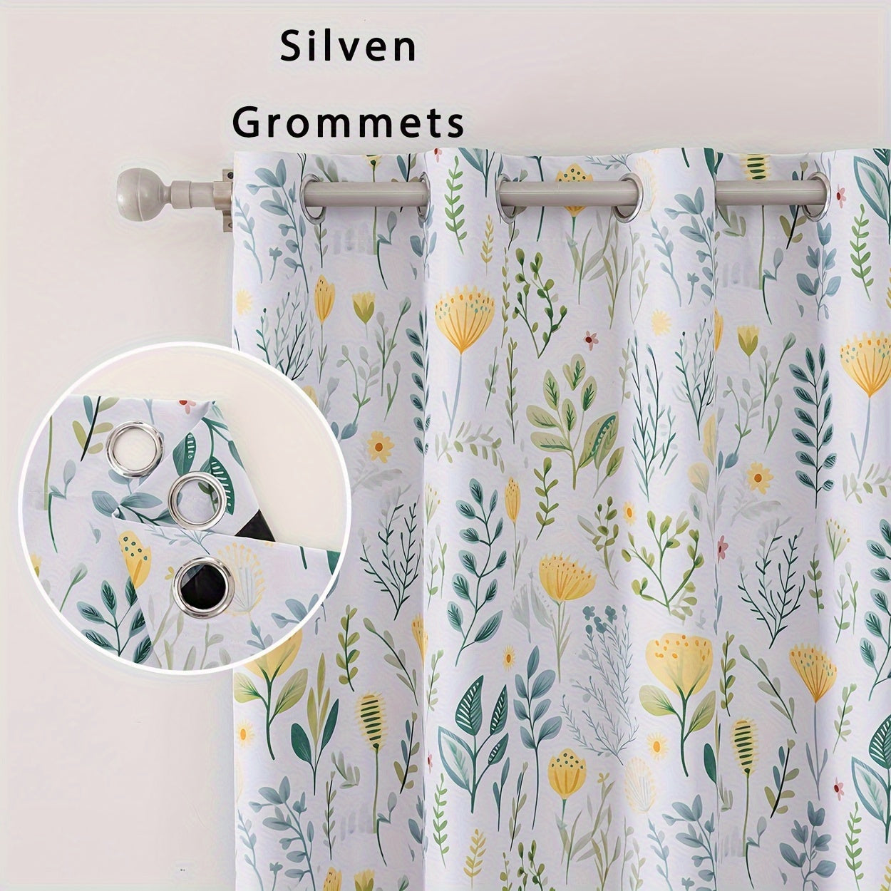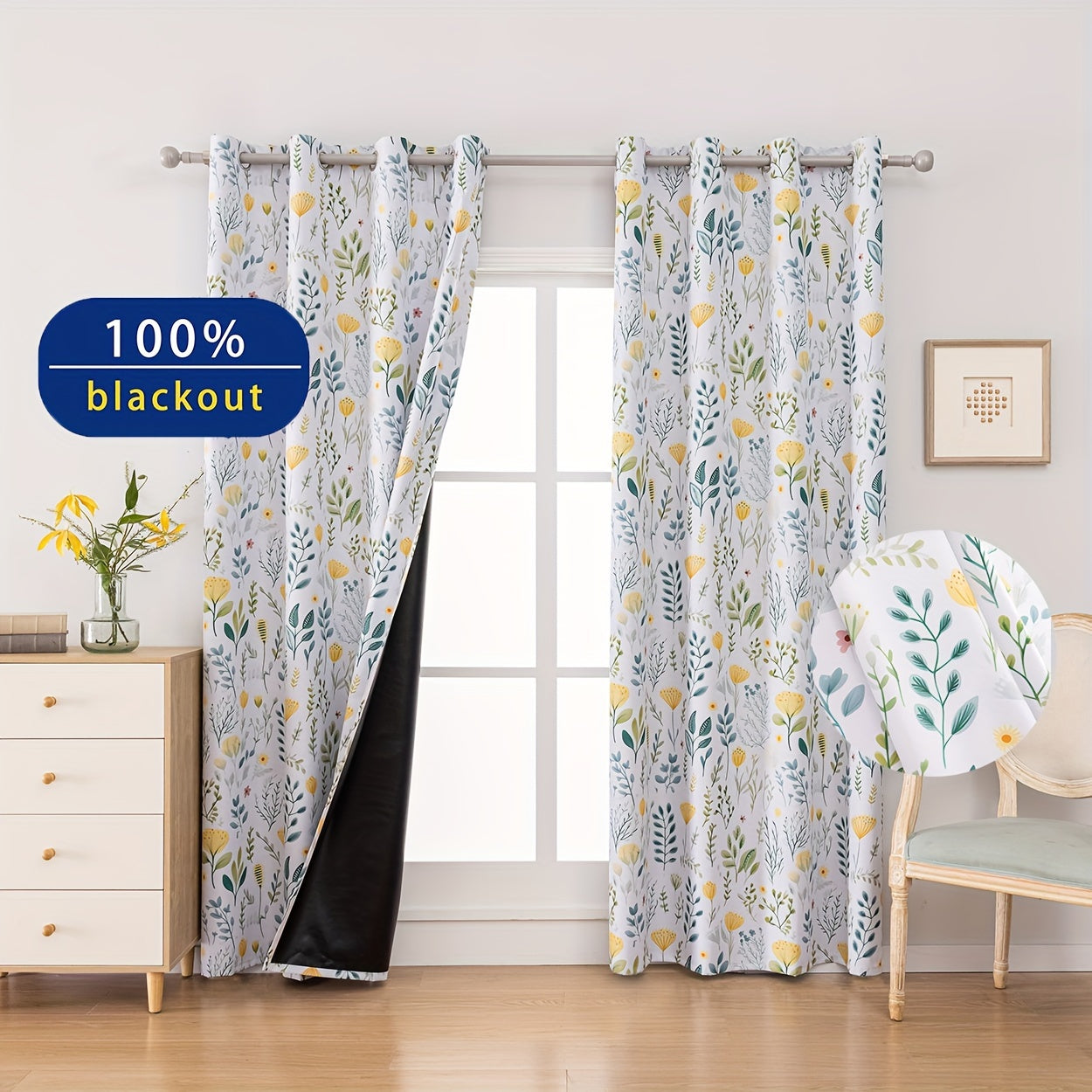 2Panels 100% Blackout Curtains, Summer Daisy Print Curtains, Top Loop Hanging, Sunscreen, Heat And Light Insulation Thick Noise Reduction Film Coated Shading Curtains, Deep Sleep Curtains, For The Bedroom Living Room Balcony Home Decoration