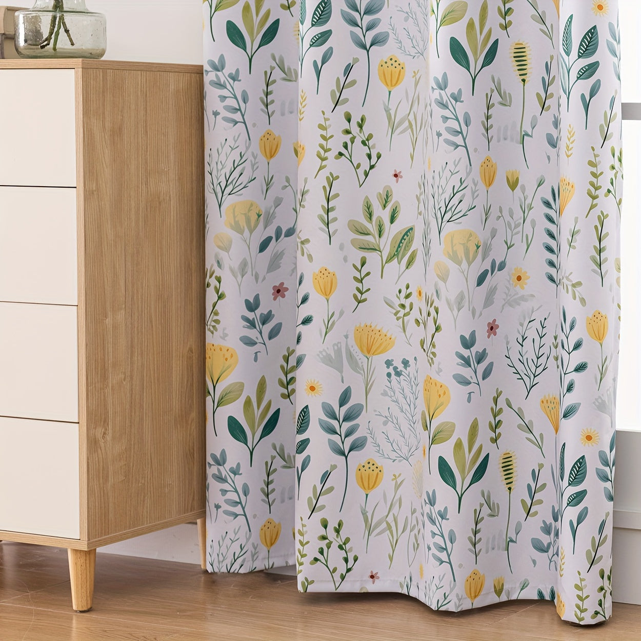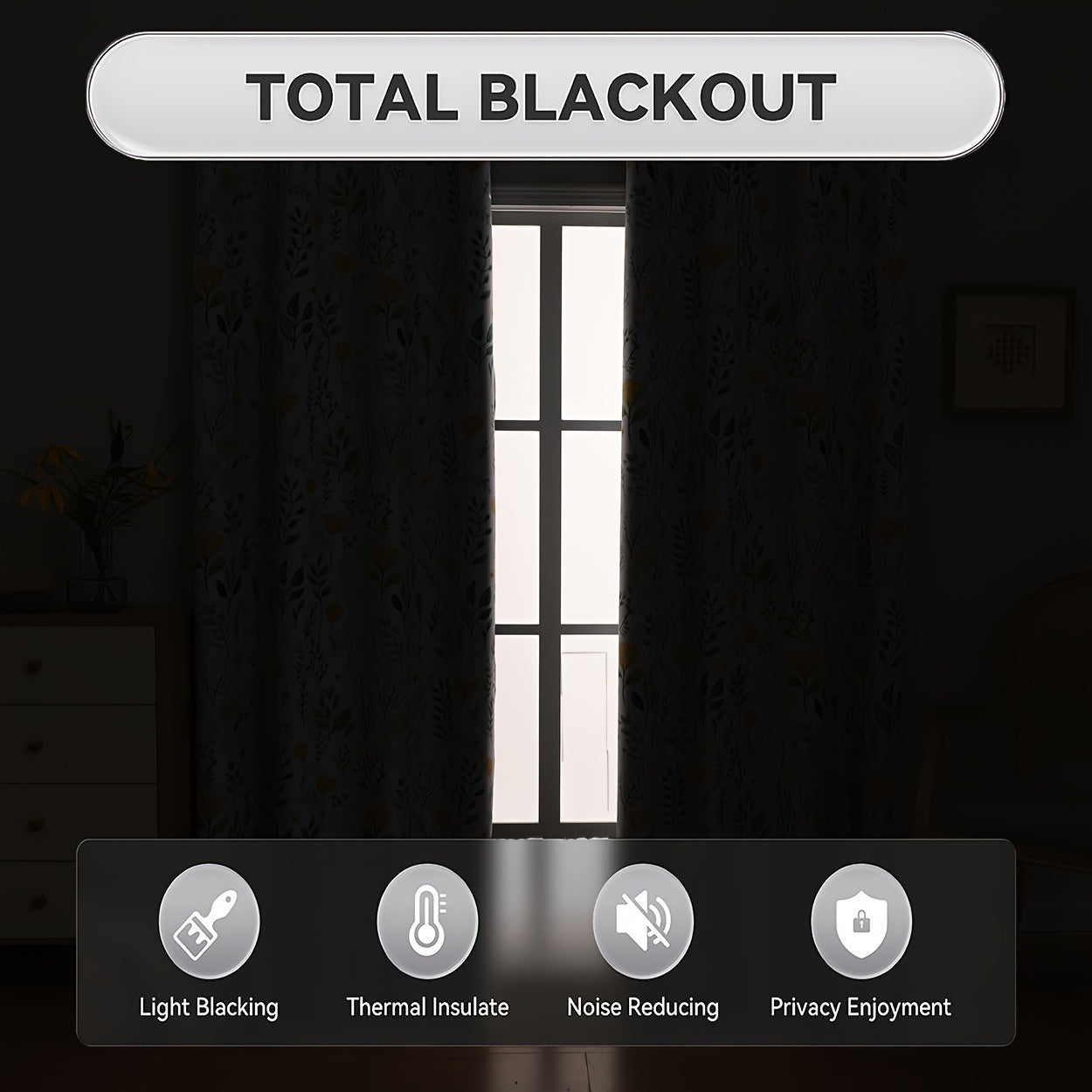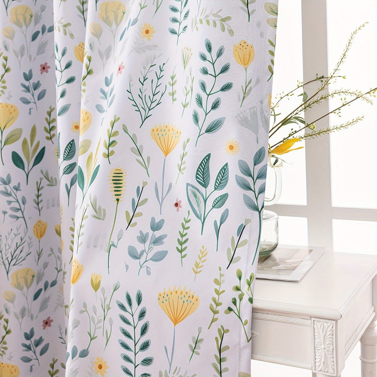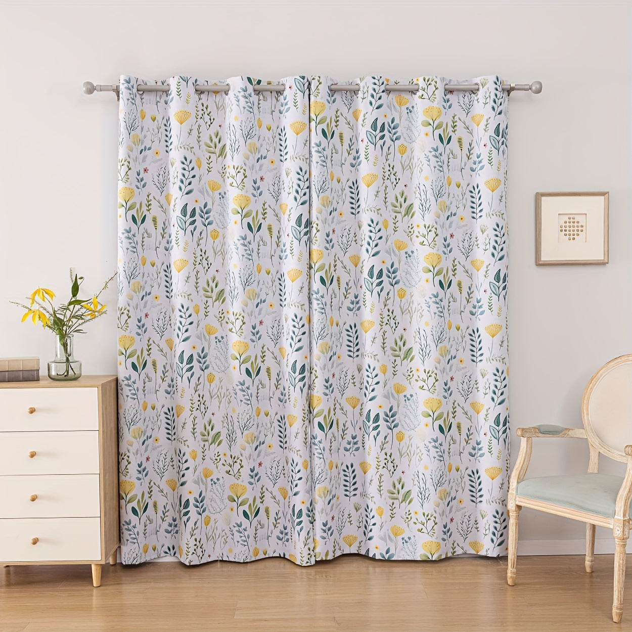 2Panels 100% Blackout Curtains, Summer Daisy Print Curtains, Top Loop Hanging, Sunscreen, Heat And Light Insulation Thick Noise Reduction Film Coated Shading Curtains, Deep Sleep Curtains, For The Bedroom Living Room Balcony Home Decoration