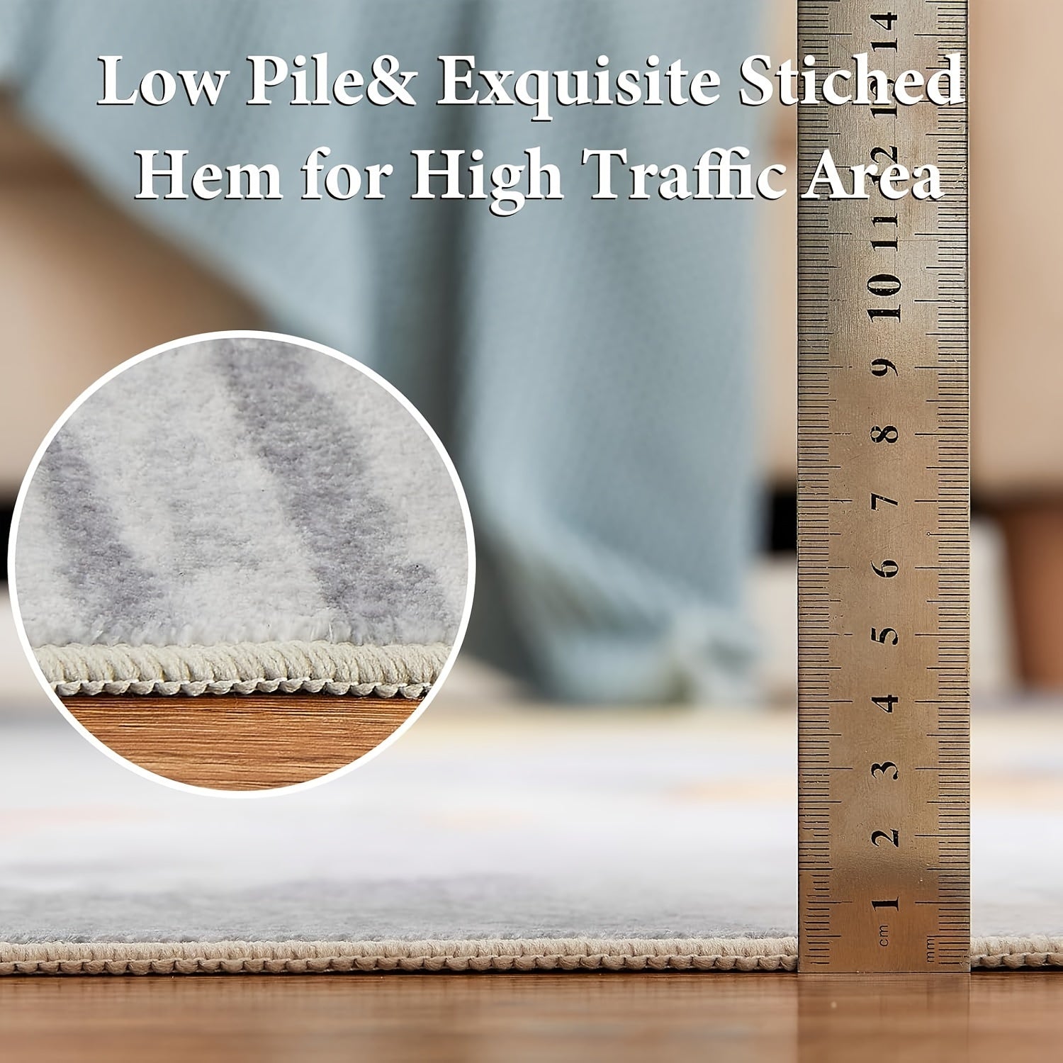 1 PC Orhopui SoftTouch Modern Geometric Rug - Washable, Non-Slip, Low Pile, Retro Accent, Patchwork Design for Living Room, Bedroom, Dining Room, Home Decor, Apartment, Office - Indoor Floor Carpet with Throw Rug, Kitchen Mat Functionality