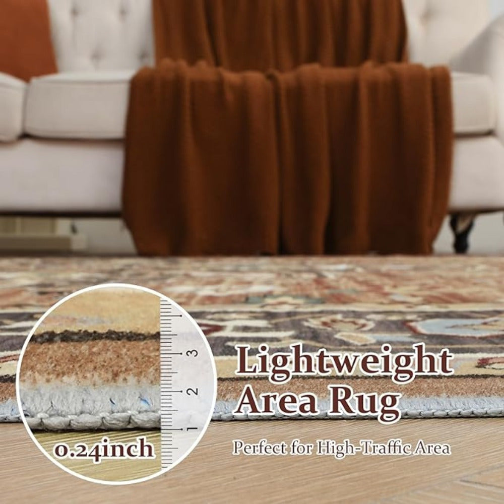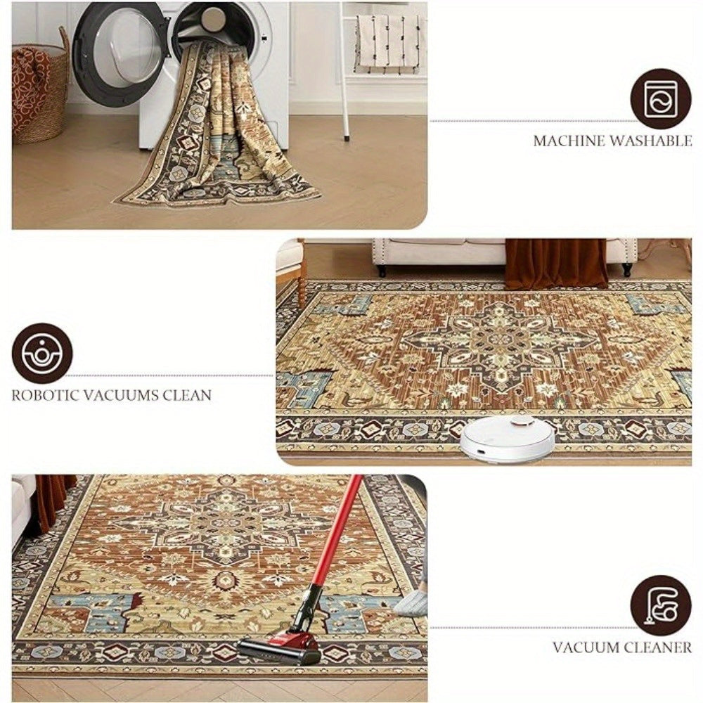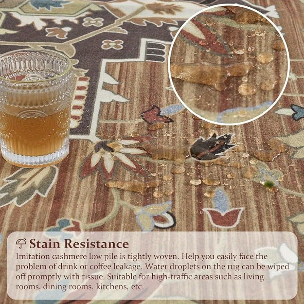 1 pc, Orhopui Washable Rug Brown Area Rug, Vintage Living Room Rug Stain Resistant Machine Washable Rug Low Pile Vintage Rug Lightweight Large Room Rug Non Slip Rugs for Dining Room Bedroom Office
