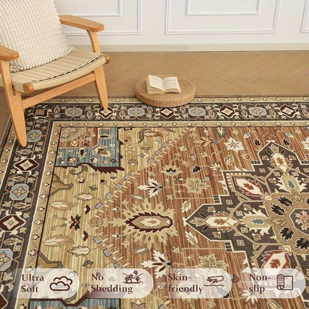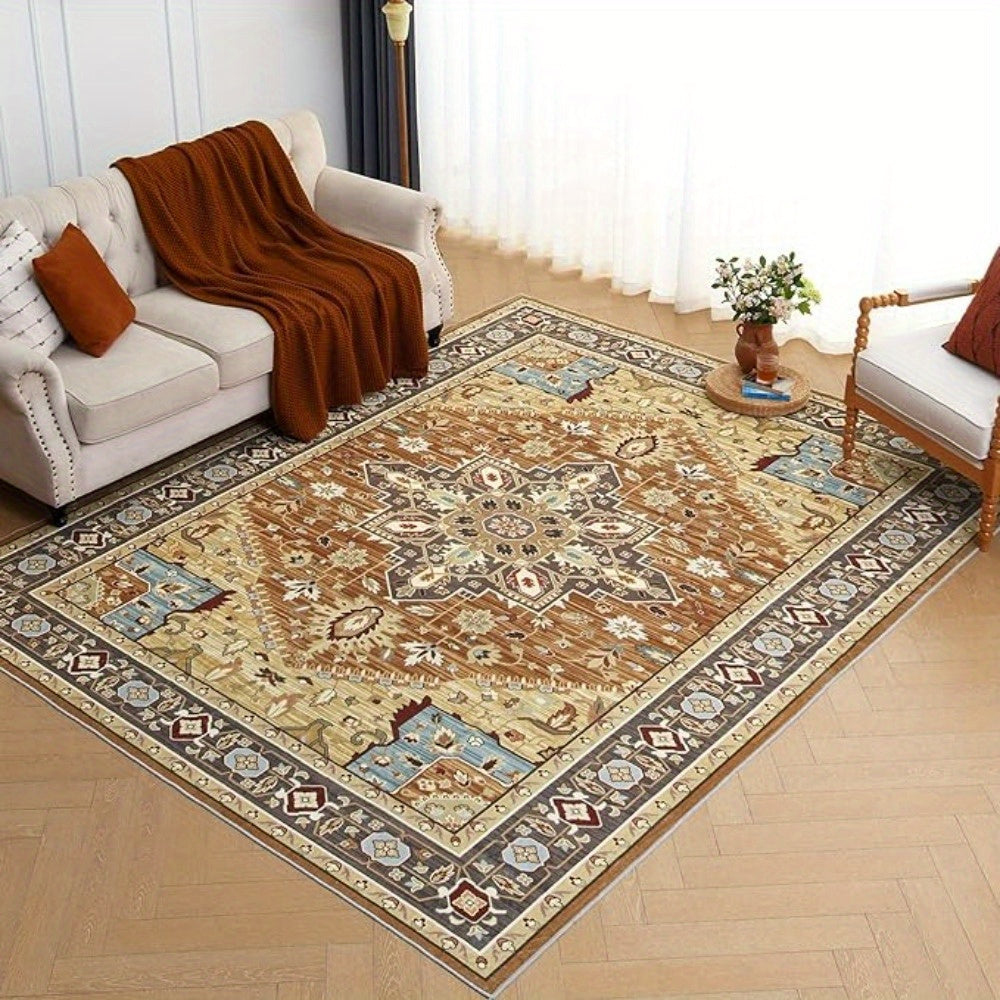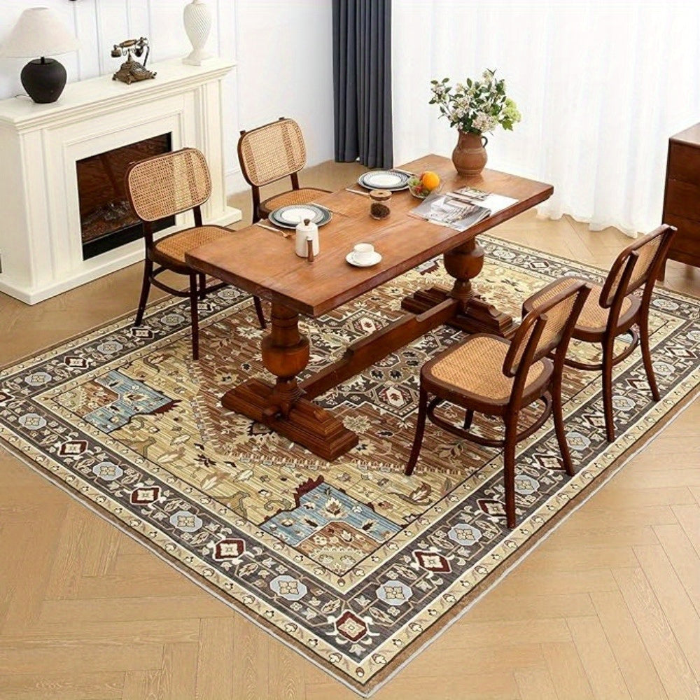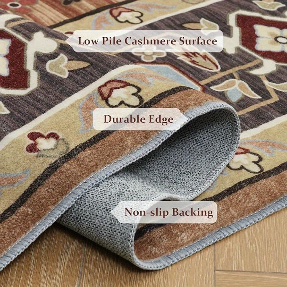 1 pc, Orhopui Washable Rug Brown Area Rug, Vintage Living Room Rug Stain Resistant Machine Washable Rug Low Pile Vintage Rug Lightweight Large Room Rug Non Slip Rugs for Dining Room Bedroom Office