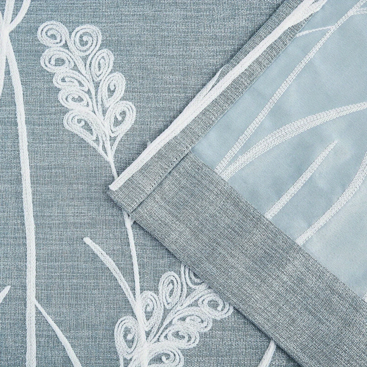 1pc Embroidery Faux Linen Blackout Curtains for Living Room Grommet Drape for Bedroom, Dining Rooms