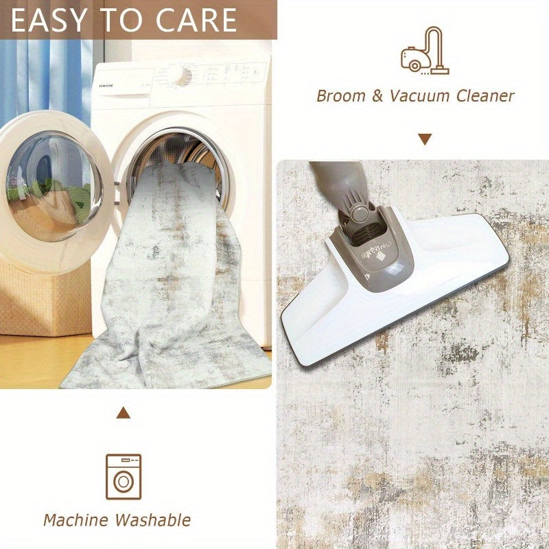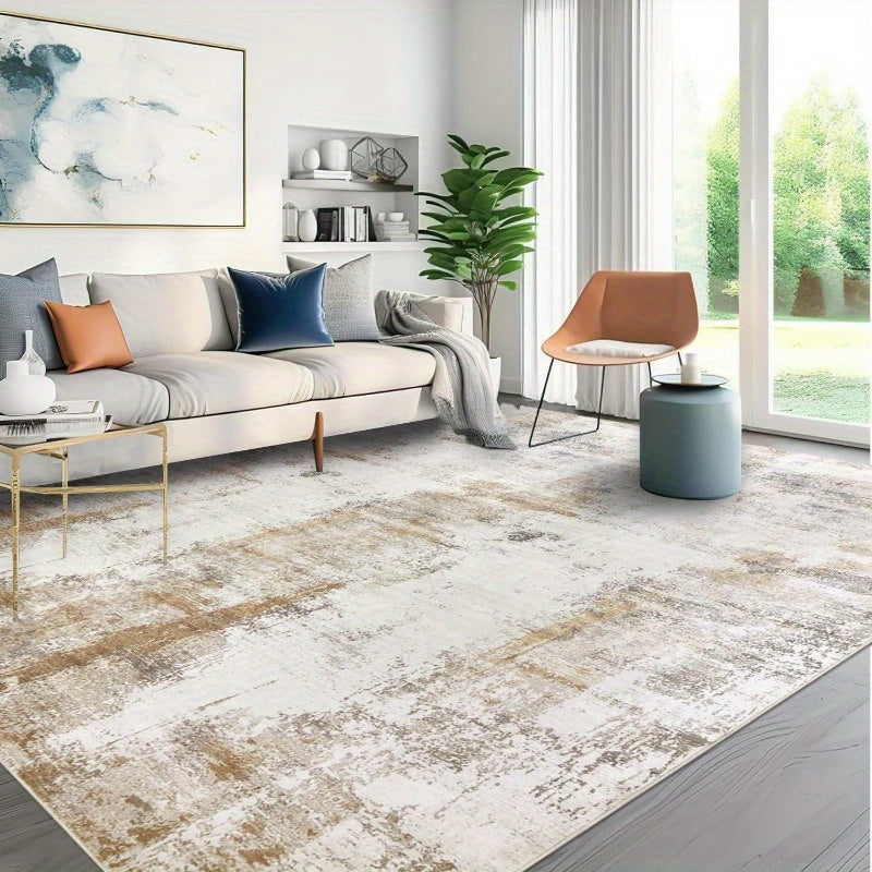 1PC famibay Machine Washable Area Rugs 8x10 Rugs for Living Room Low Pile Neutral Area Rug Large Dining Room Rugs for Under Table Rubber Back Abstract Carpet Rugs for Living Room Under Bed (Beige/ Camel