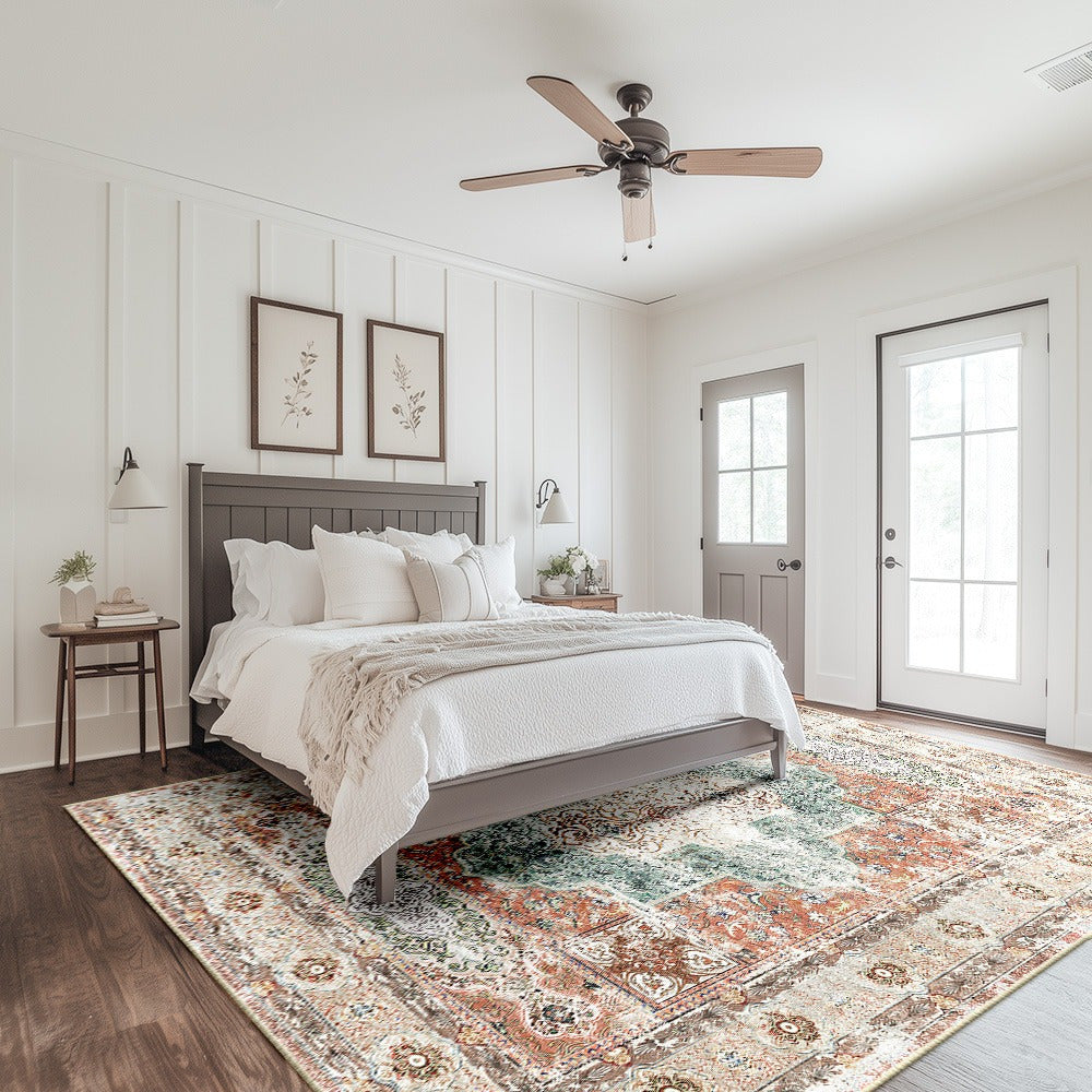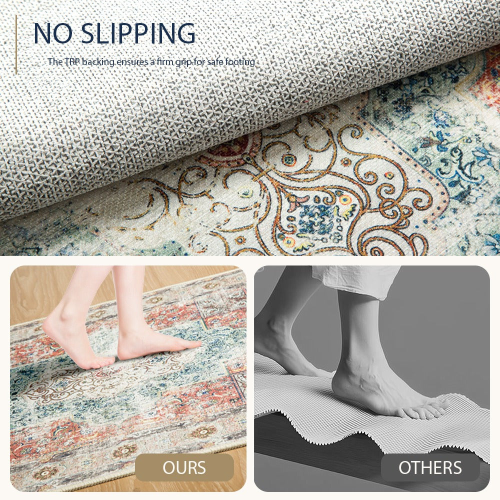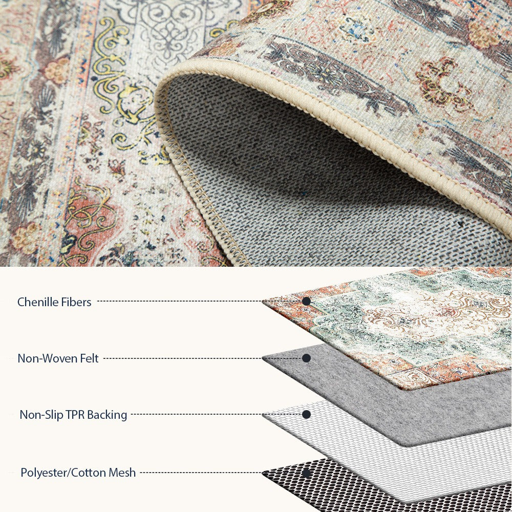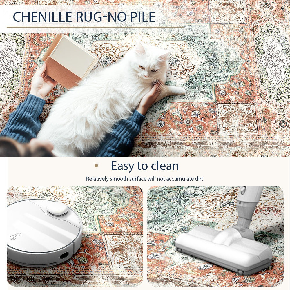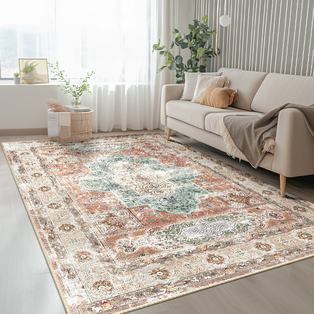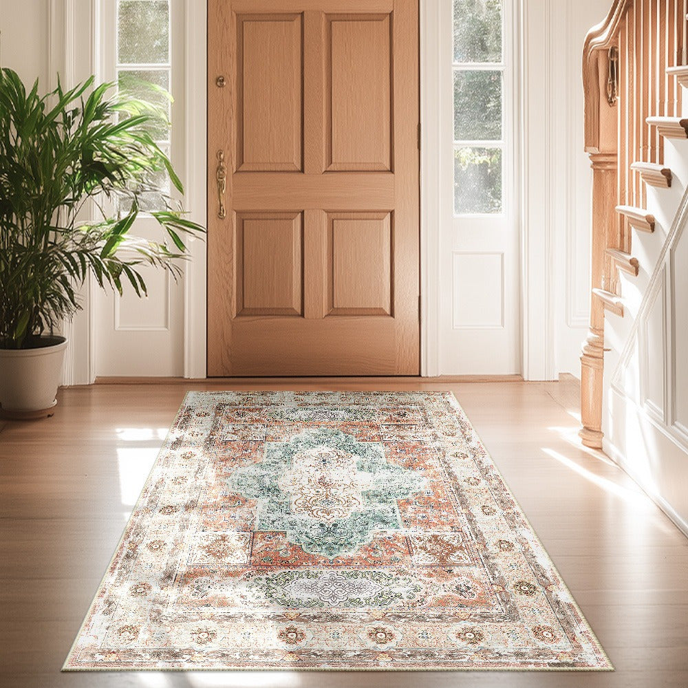 1pc Vibrant Boho Chic Area Rugs - Machine Washable, Non-Slip, Stain Resistant, Vintage Woven Christmas Rug, Effortless Cleaning & Durable, Suitable for Living Room, Bedroom, Dining Room, Home Office - Brick/Green Area Rugs for Living Room
