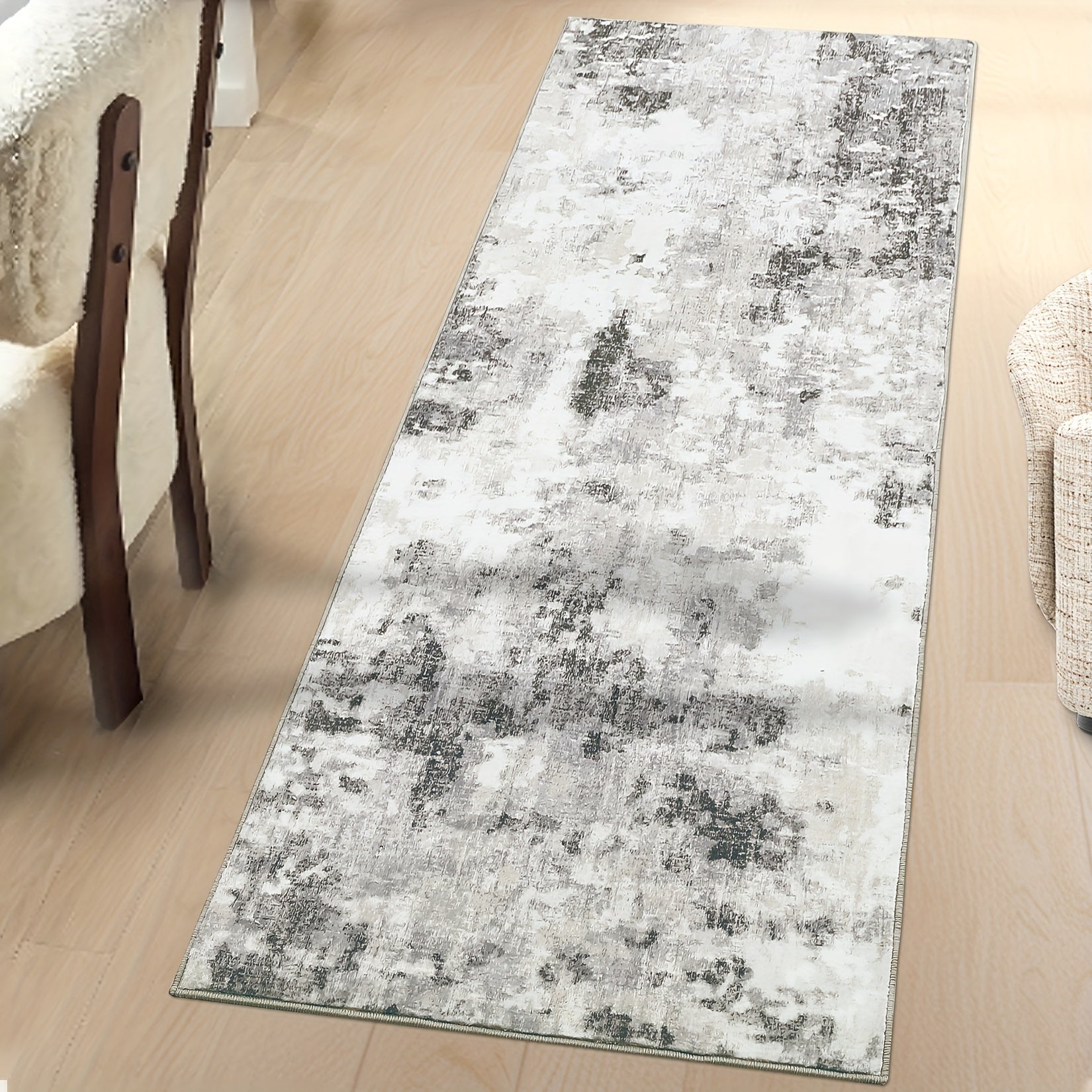 1PC Washable Area Rug Modern Abstract Rug For Living Room Bedroom Contemporary Distressed Office Carpet Low Pile Non Slip Neutral Soft Ultra-Thin Rug Runner Rug For Entryway Kitchen Rug Farmhouse Gray Camel