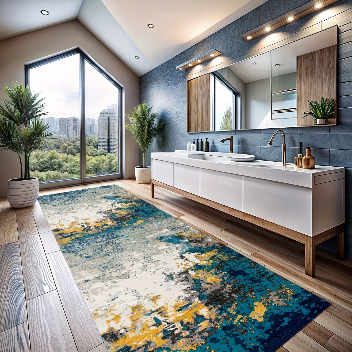 1PCS Living Room Geometric Carpet, Anti Slip Pattern Printing, Indoor Area Home Mat, Bedroom Headboard Decoration Carpet