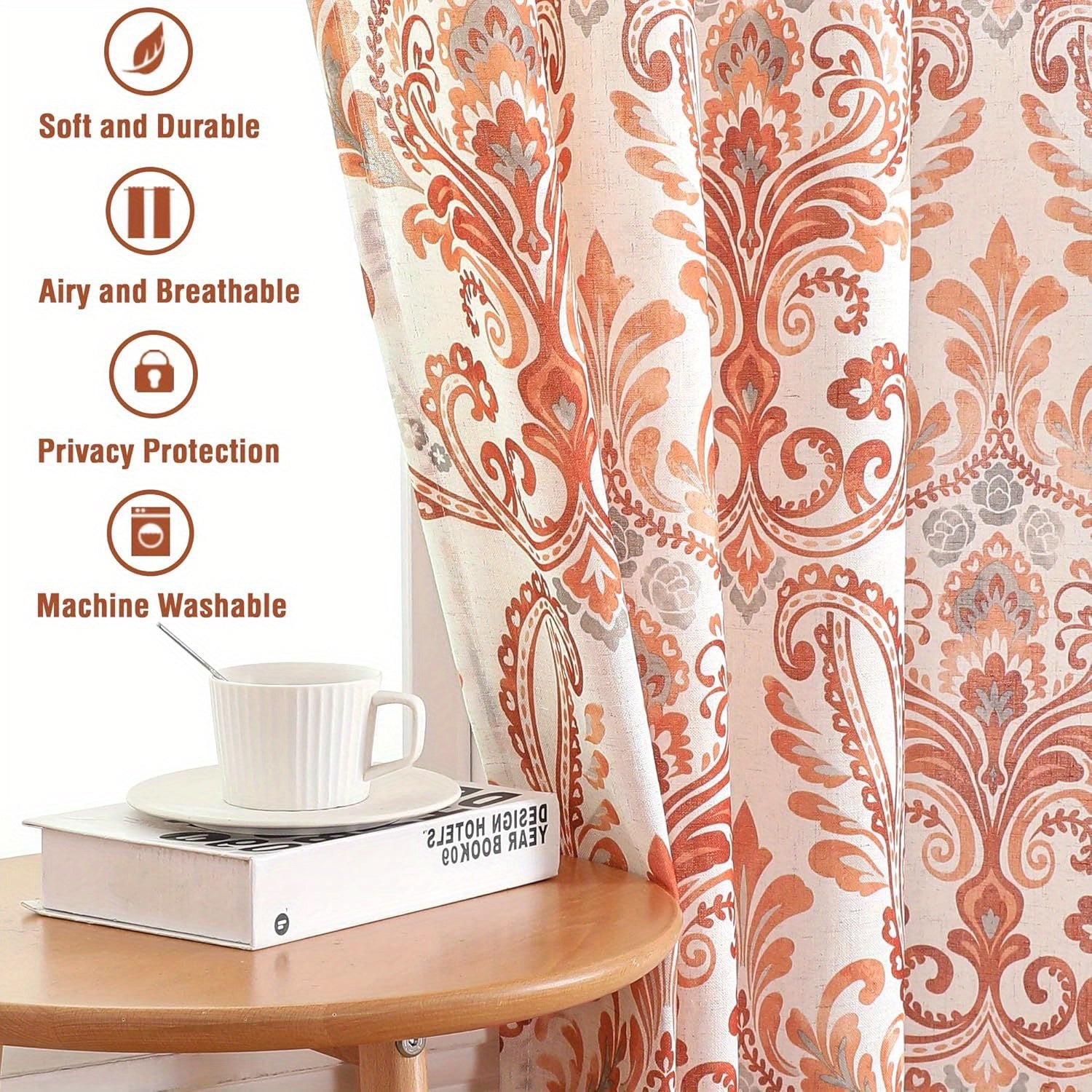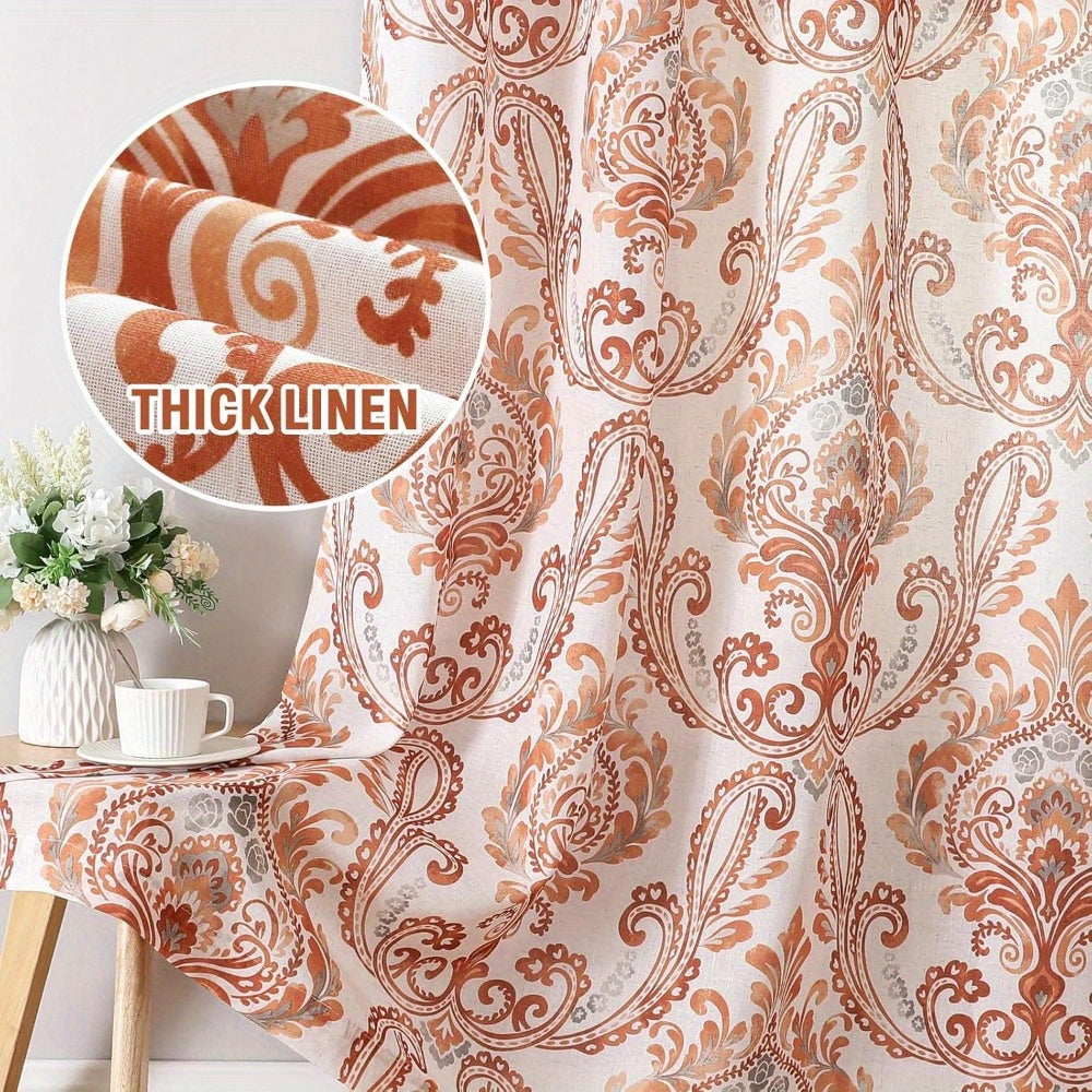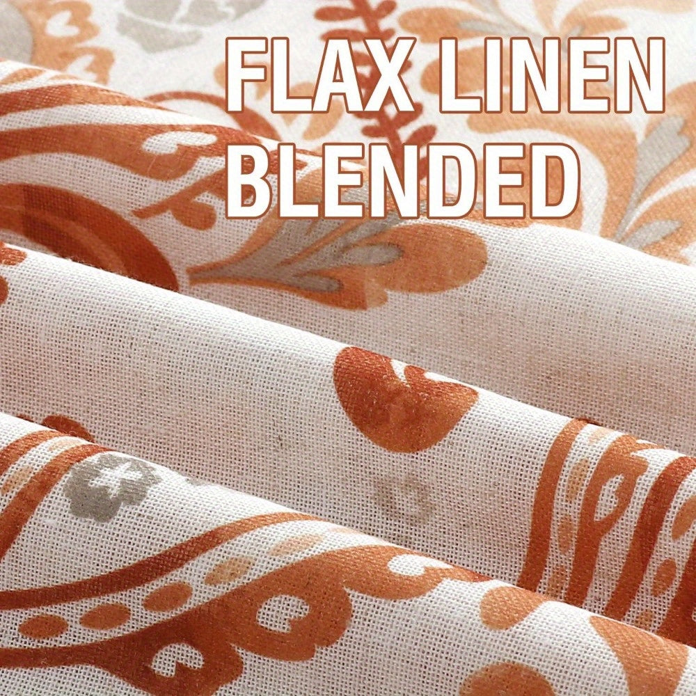 2 Panels PrinceDeco Linen Curtains 84 Inch Length for Living Room Natural Linen Blended Framhouse Curtains & Drapes for Sliding Glass Door, Terry Red, Floral Pattern