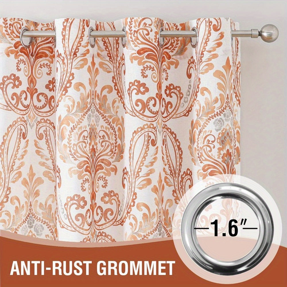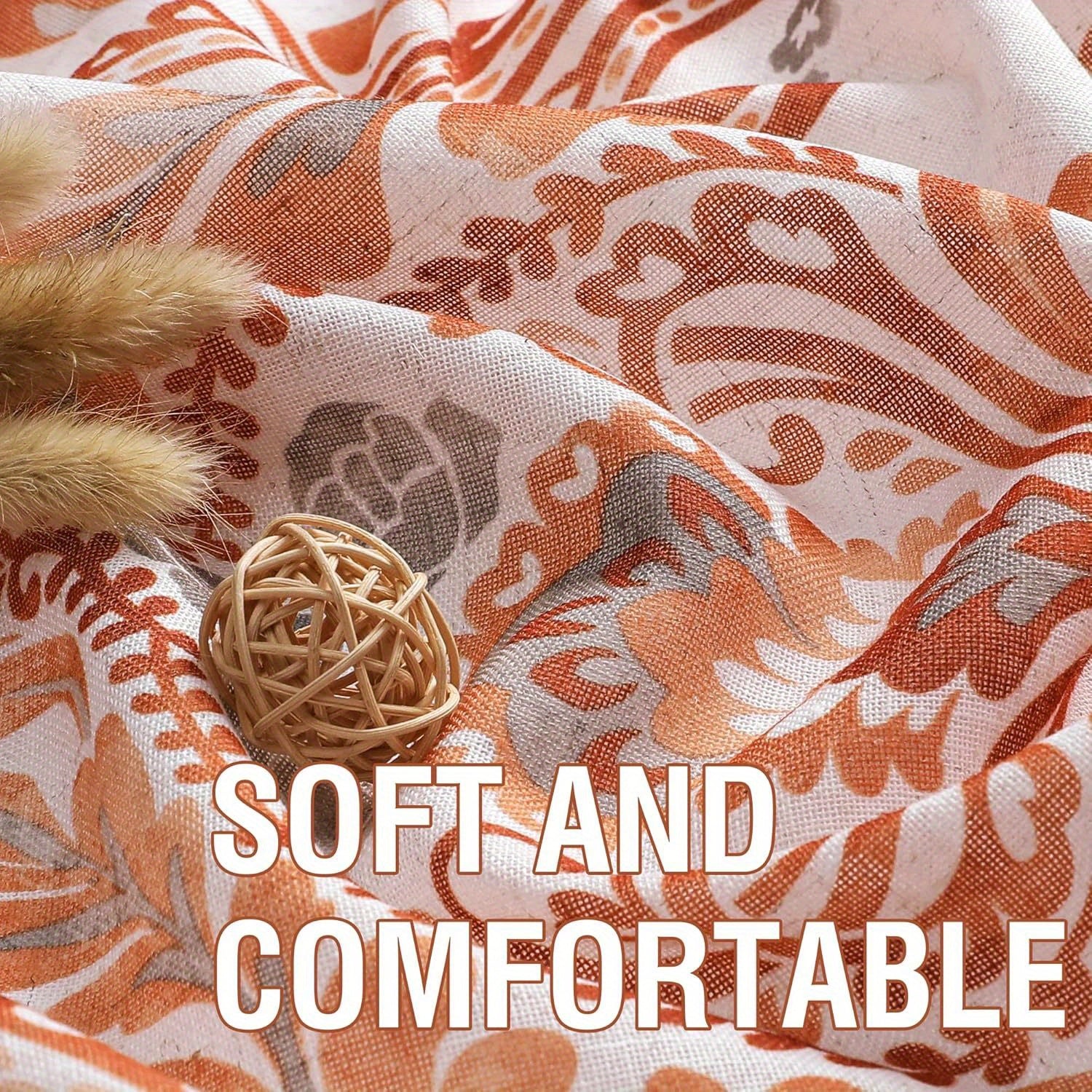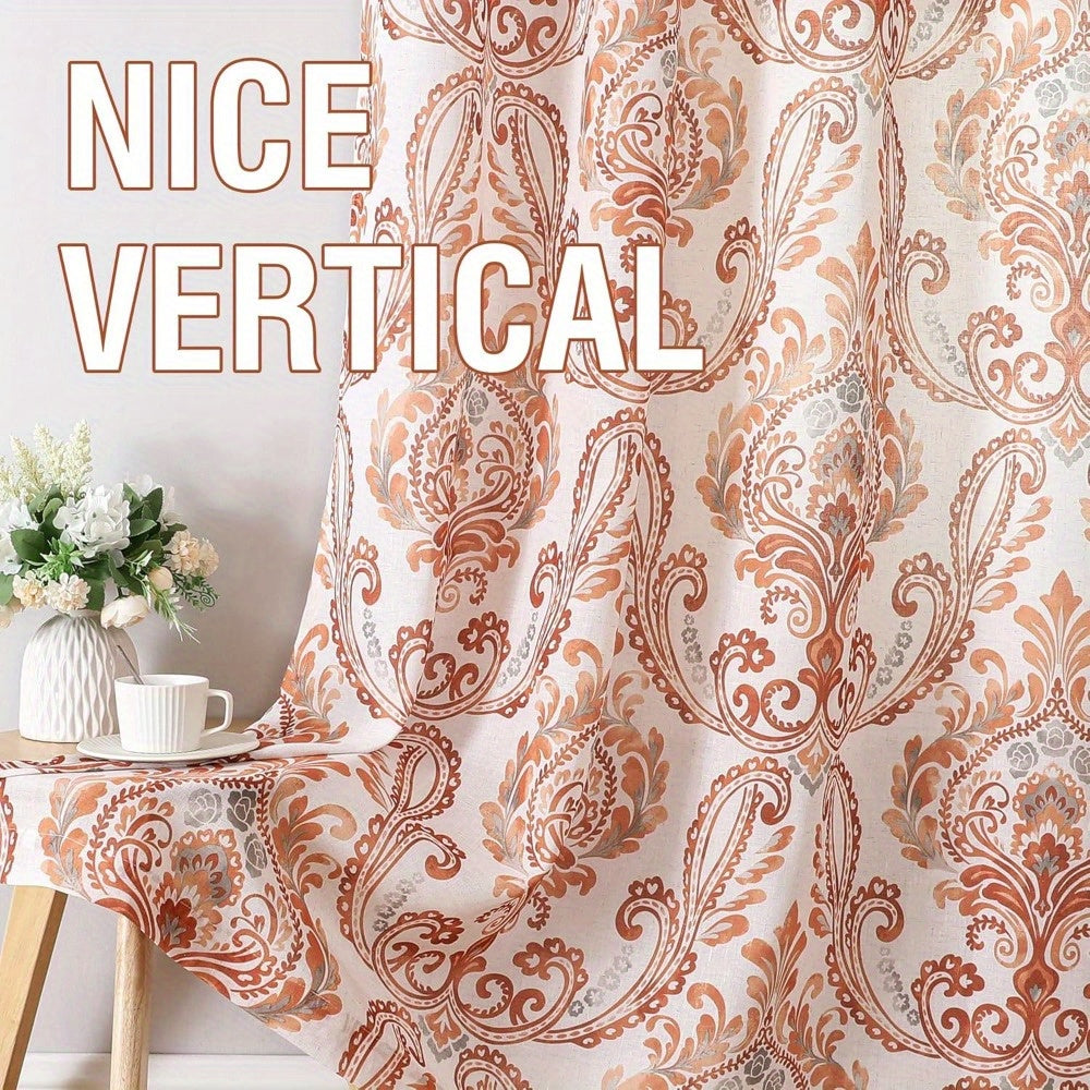 2 Panels PrinceDeco Linen Curtains 84 Inch Length for Living Room Natural Linen Blended Framhouse Curtains & Drapes for Sliding Glass Door, Terry Red, Floral Pattern