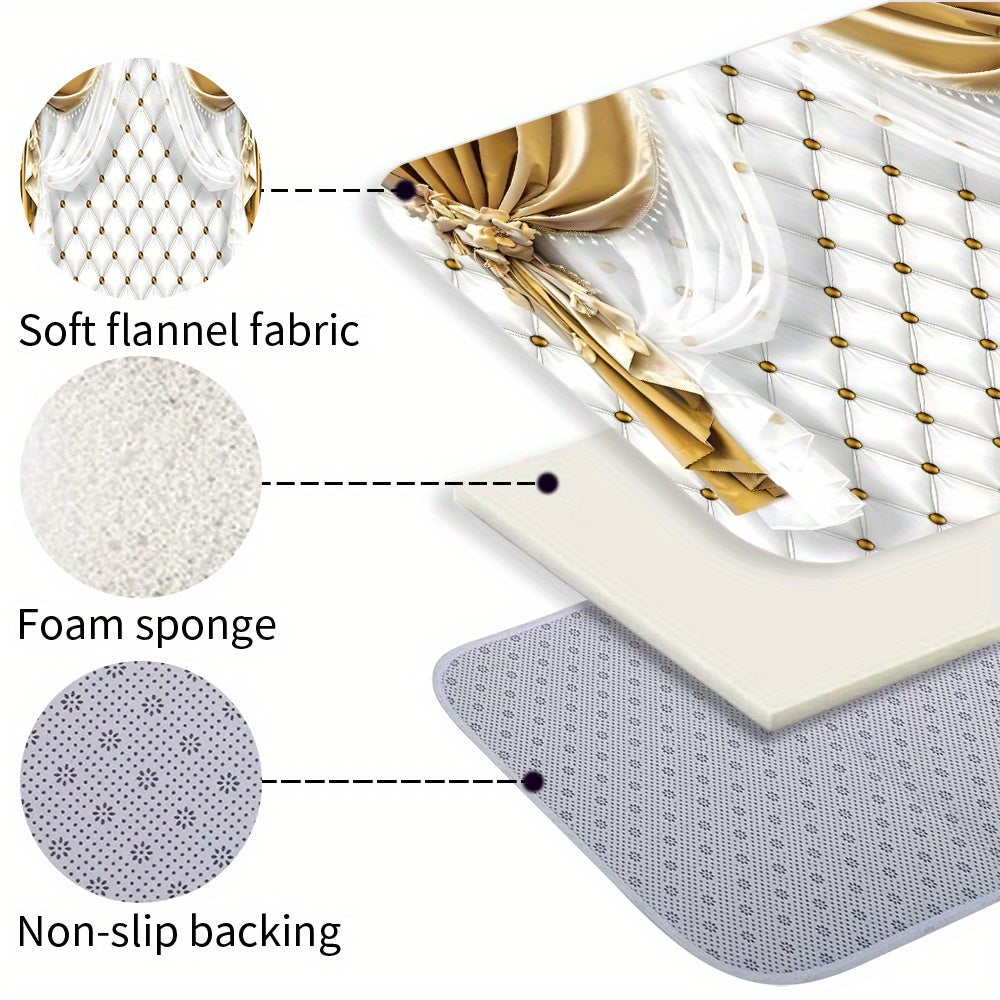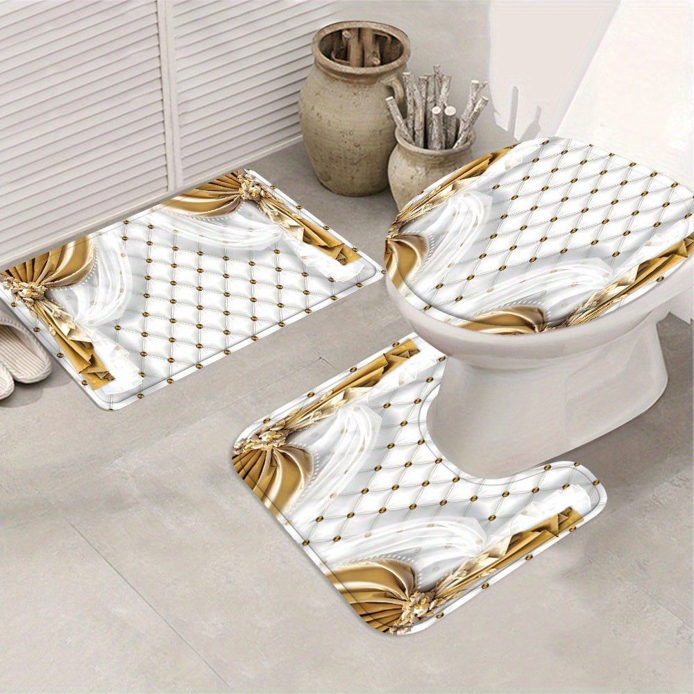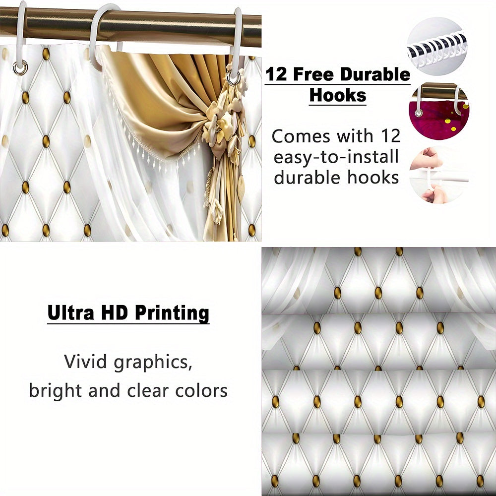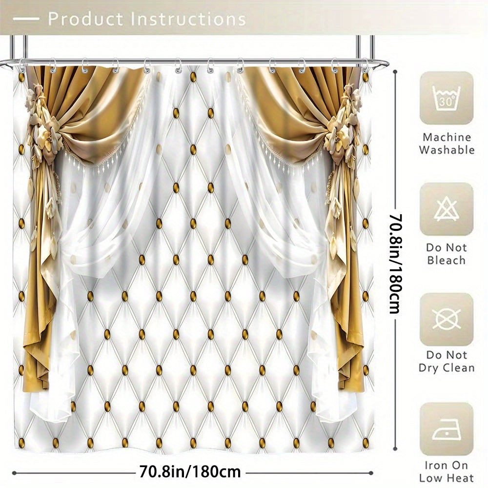 4pcs three piece Modern 4-Piece White Gold Lace Shower Curtain Set with Hooks and Toilet Mat for Bathroom Decor