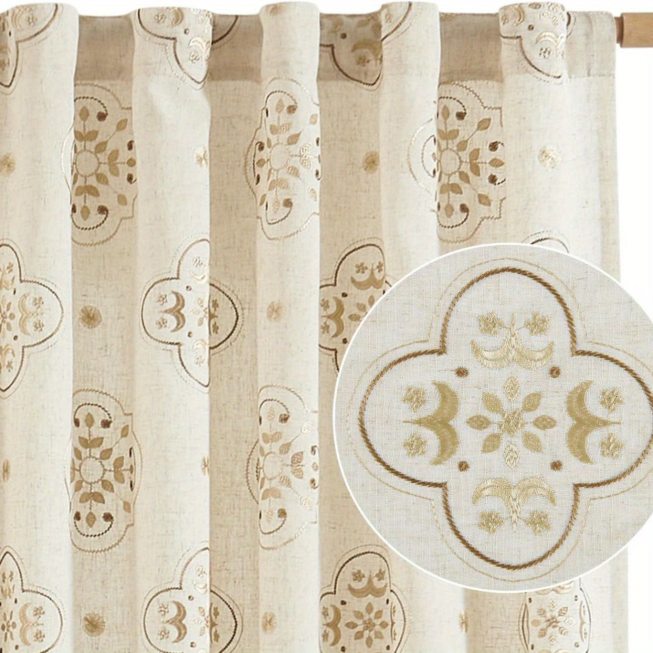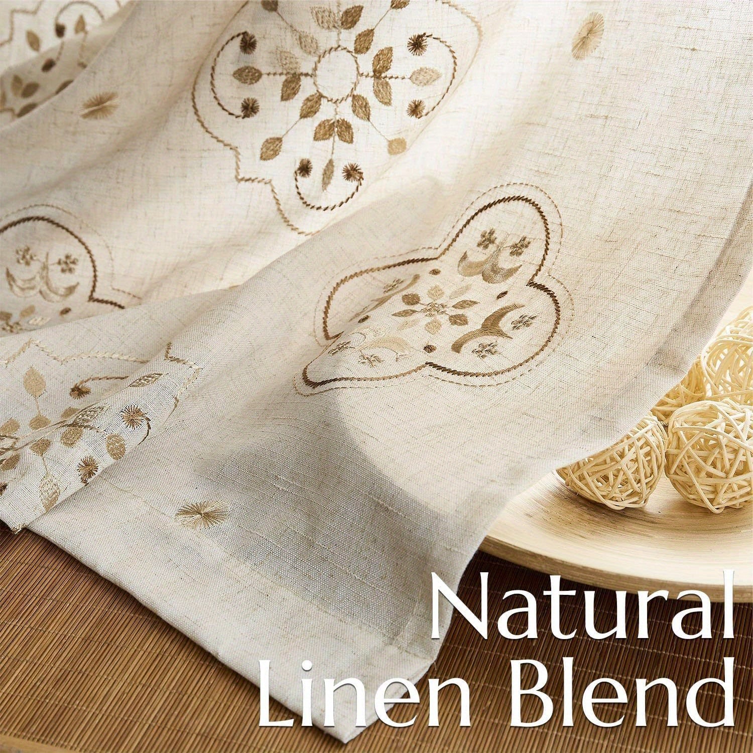 COLLACT Linen Curtains Embroidery Floral Country Farmhouse Curtains for Living Room Rustic Rod Pocket Back Tab Light Filtering Window Curtains Drapes Taupe Bedroom Curtains, 2 Panels 55"W