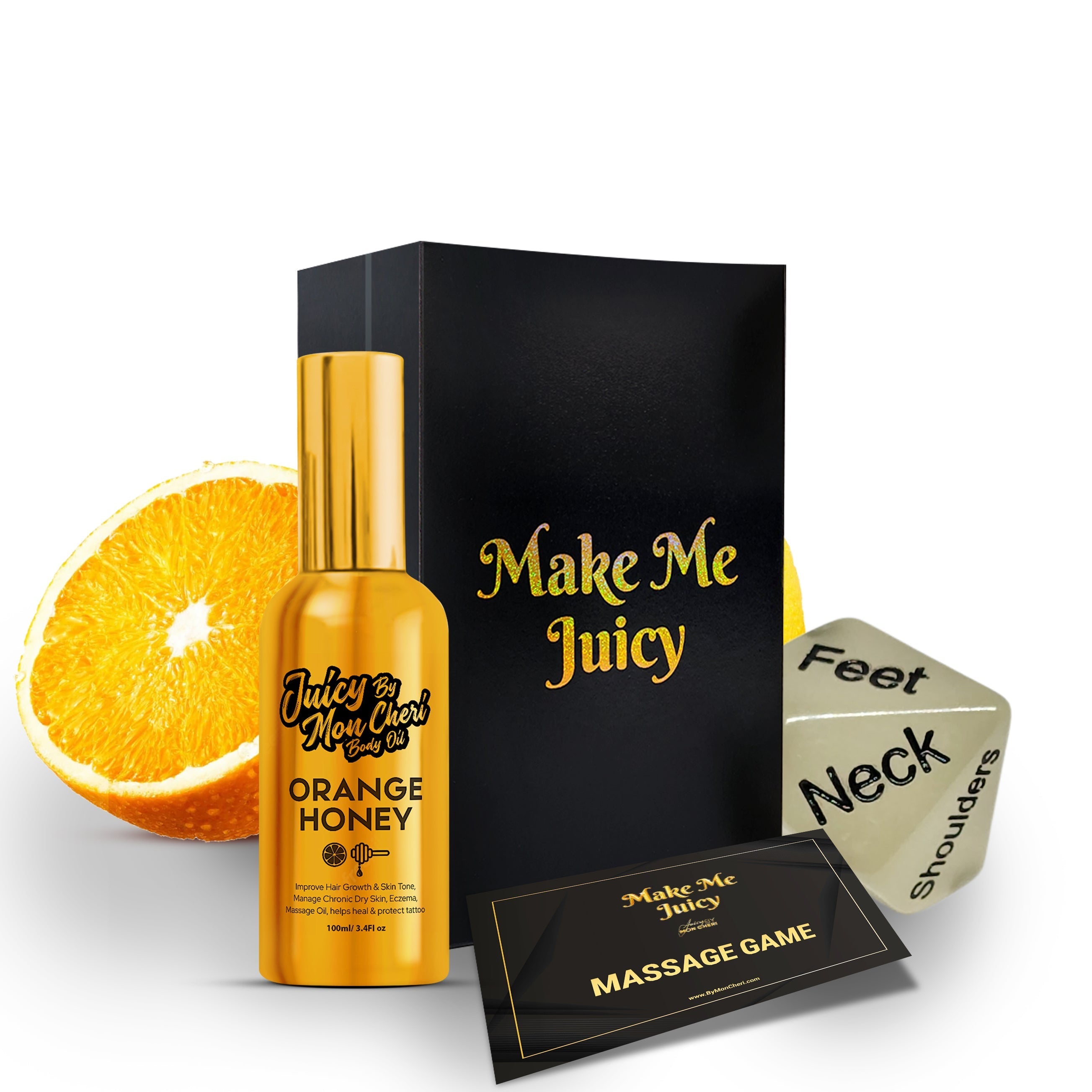 Indulge in a luxurious and playful massage experience with Juicy by Mon Cheri’s Couples Massage Oil & Rolling Dice Game. This set combines the soothing touch of premium massage oil with an exciting dice game, making it perfect for romantic date nights, anniversaries, or special moments with your partner.