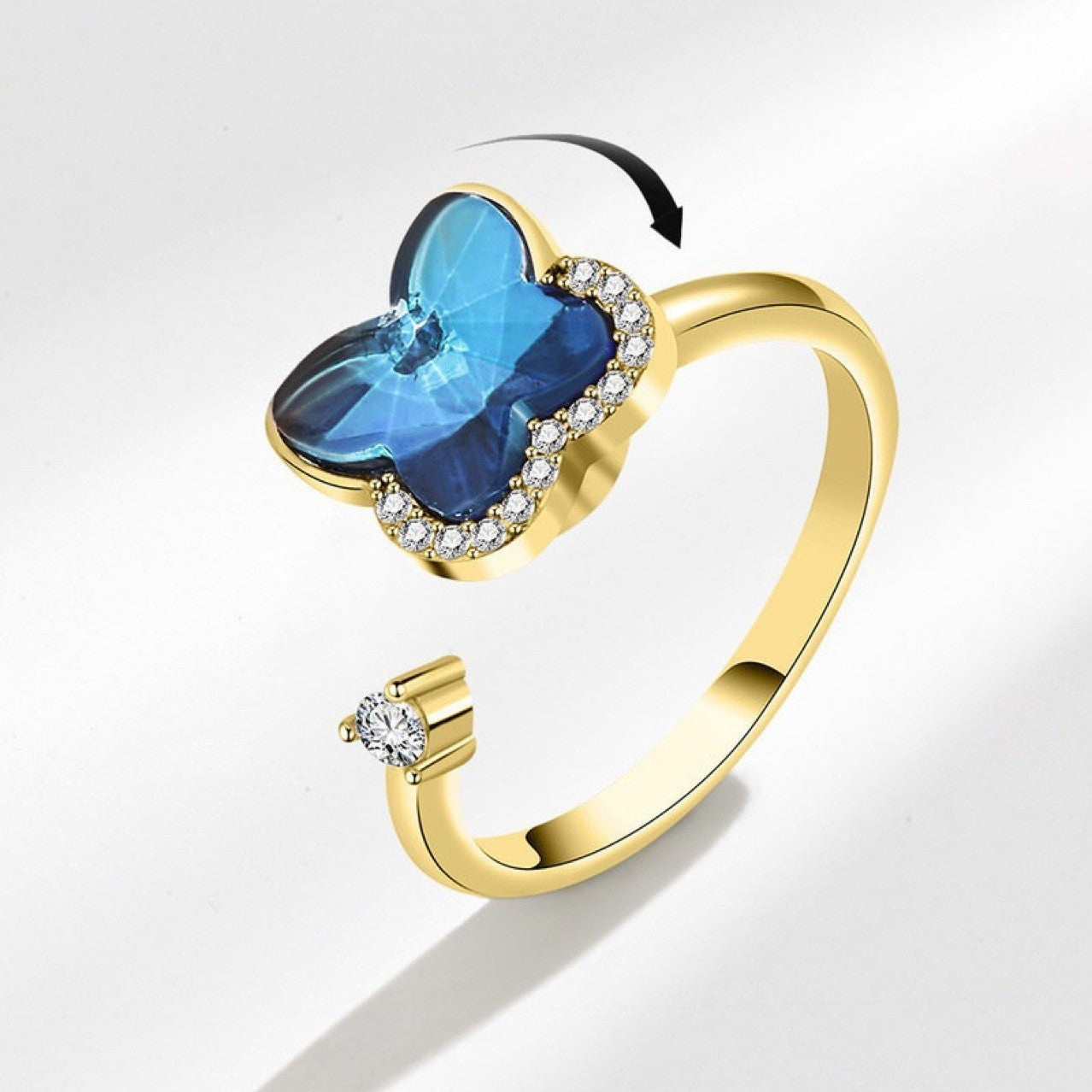 Decompression Rotating Butterfly Ring Adjustable Open Ring