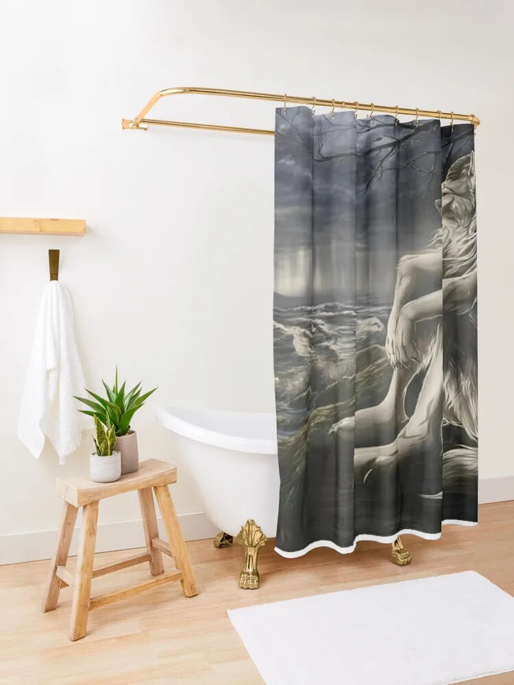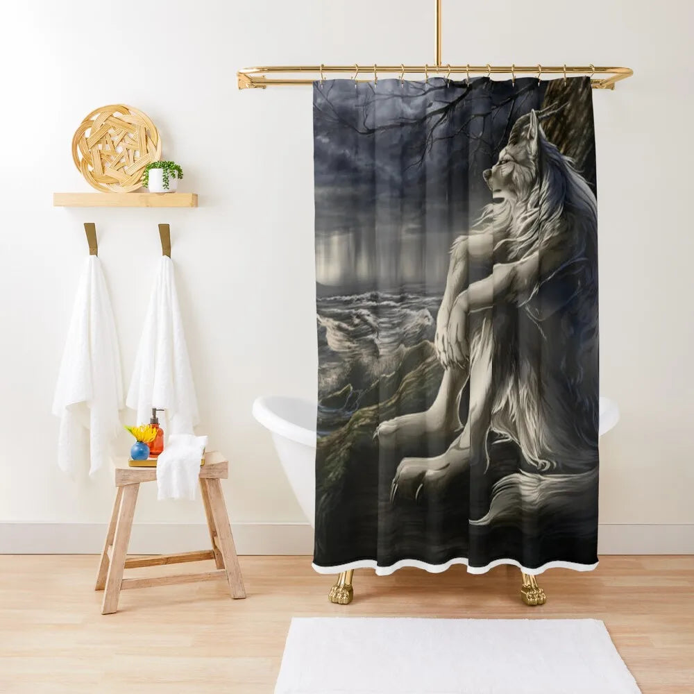 emo white wolf sitting sad meme Shower Curtain Bathroom Shower Set Bathroom And Shower Products Anime Bathroom Curtain