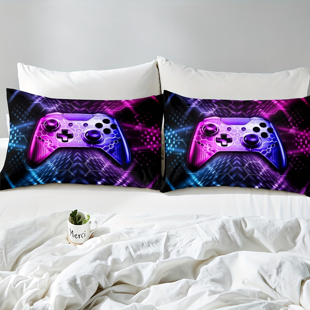 Gamepad Controller Bedding Sets For Women Men Adults, Reversible Gaming Duvet Cover Set, Teens Video Games Geometry Comforter Cover, Bed Set For Men Bedroom Decor, , Blue Pink Green Neon A Great Birthday Present For Daughter Or Son Luxury Theme
