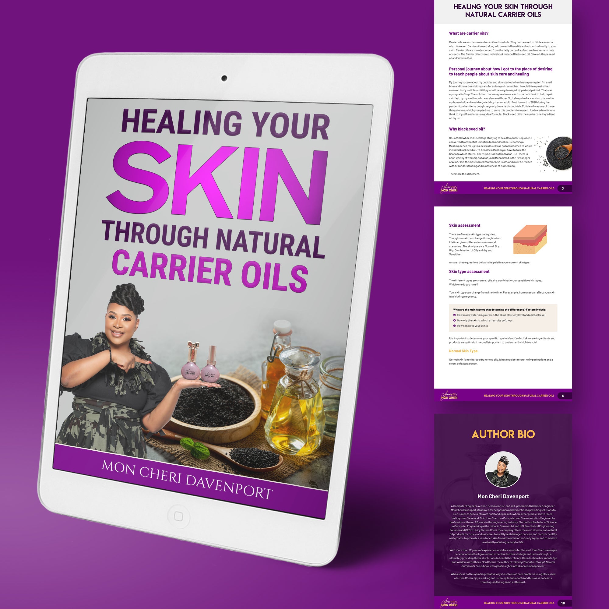 Hello, my name is Mon Cheri, and in my book ‘Healing Your Skin Through Natural Carrier Oils’, I define what Natural Carrier Oils are and teach you how you can use them to heal your skin and reap the maximum benefits, no matter your skin type. I also share with you my personal journey on skincare and healing to help you create an effective skincare routine that works for you and allows you to enjoy youthful skin.