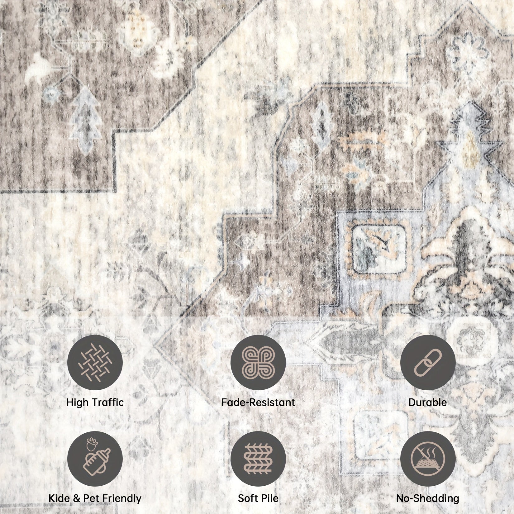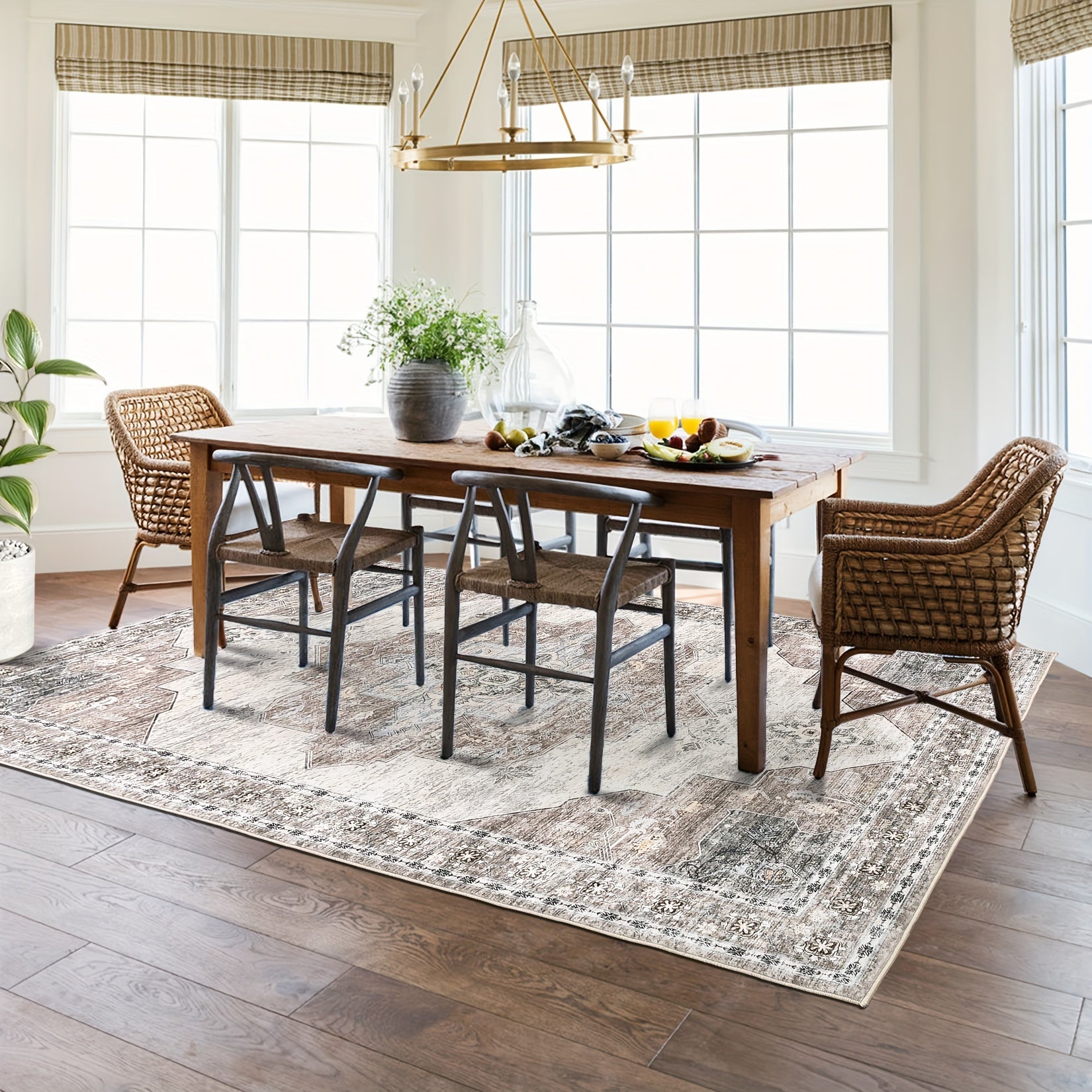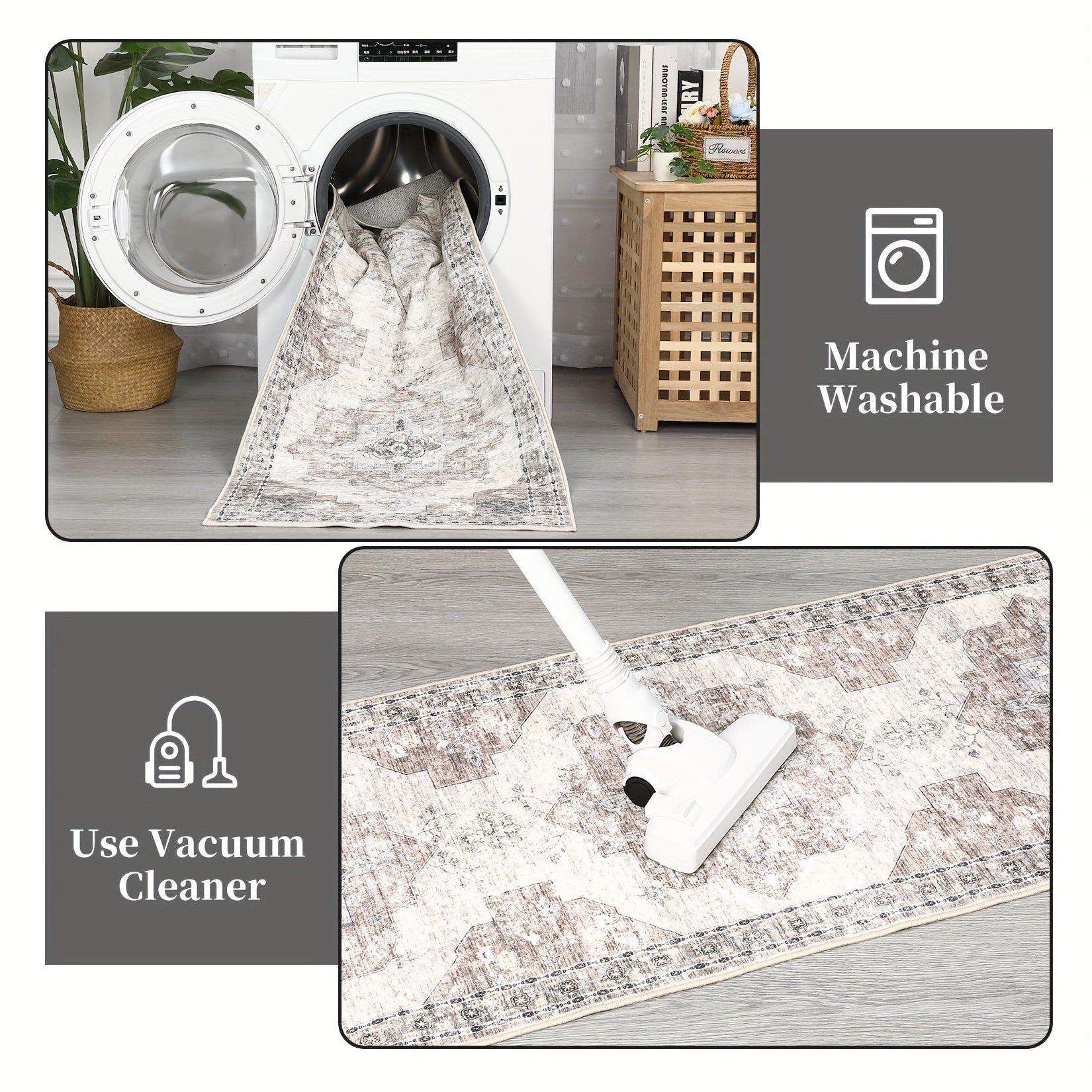 Living Room Boho Kitchen Print Area Rug Low Pile Stain Resistant Floorcover Thin Soft Home Decor Aesthetics Doormat Non Slip Bordered Indoor Carpet Non Shedding Easy To Clean Mat Throw Rug For Laundry Bedroom Bathroom Bedside Dining Room