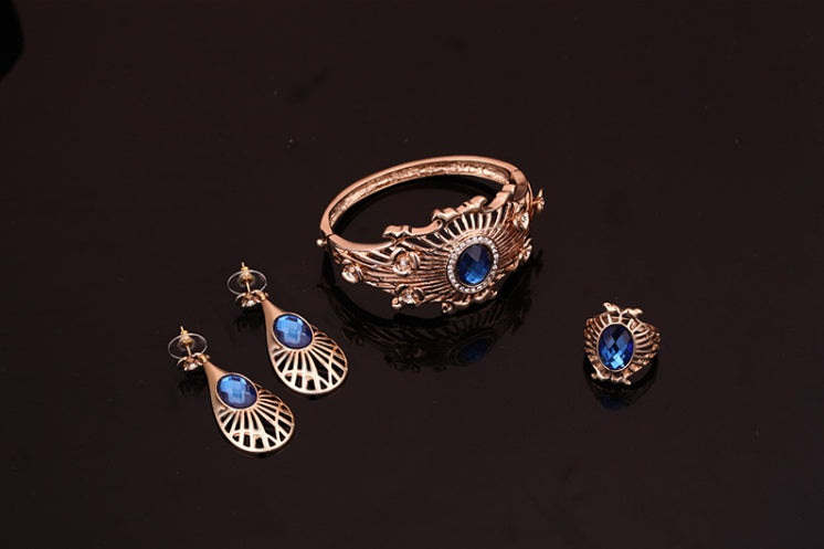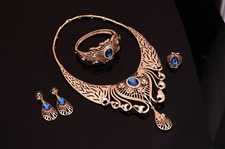 High-end necklace, earrings, bracelet, ring set, ladies party, alloy, four-piece jewelry set