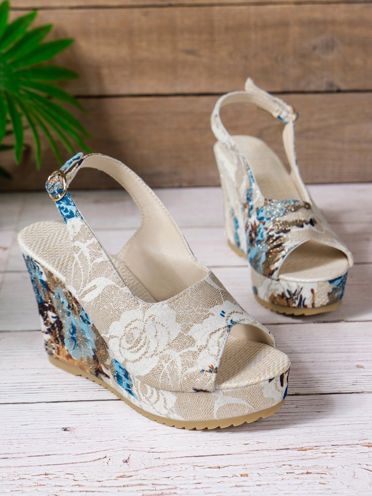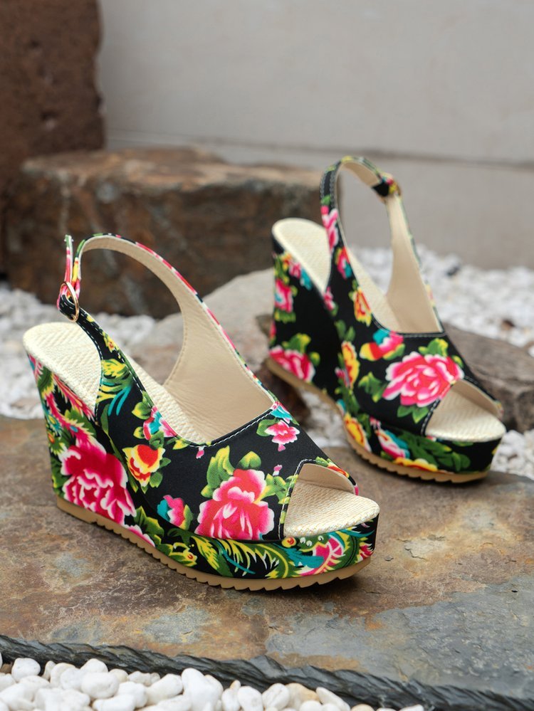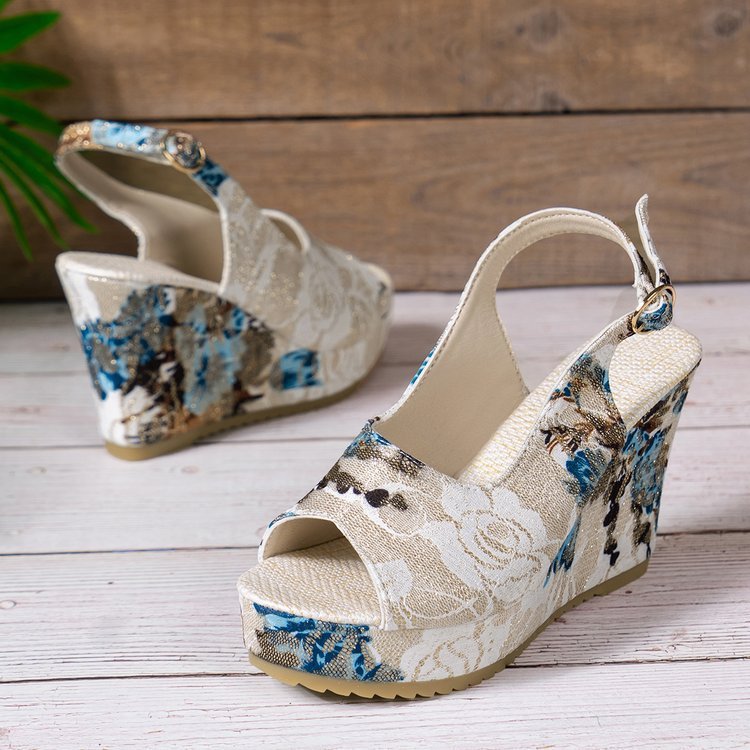 Plus Size Wedge Sandals European And American Fashion Embroidery Height Increasing