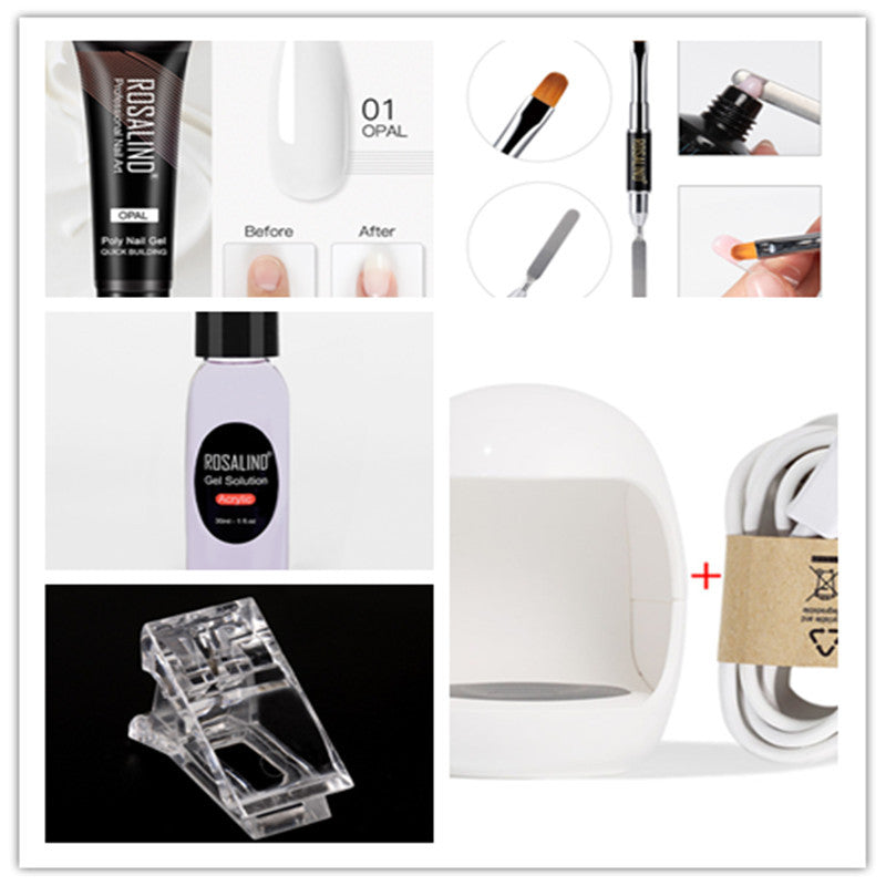 One set of nail extension glue, nail cleaning water, nail pen, nail lamp, and nail fixing clip