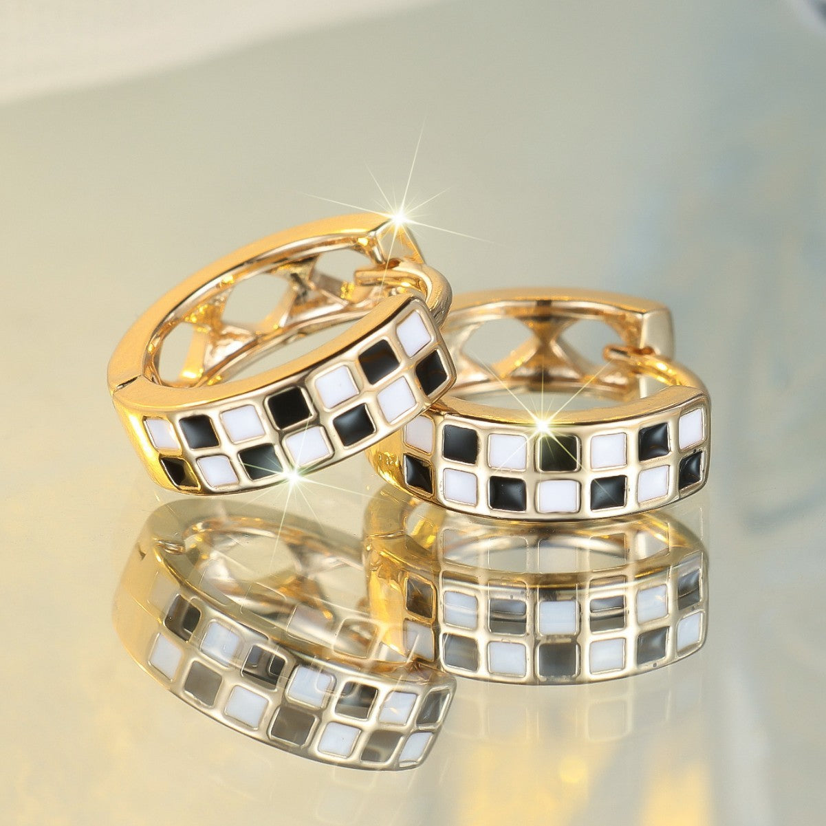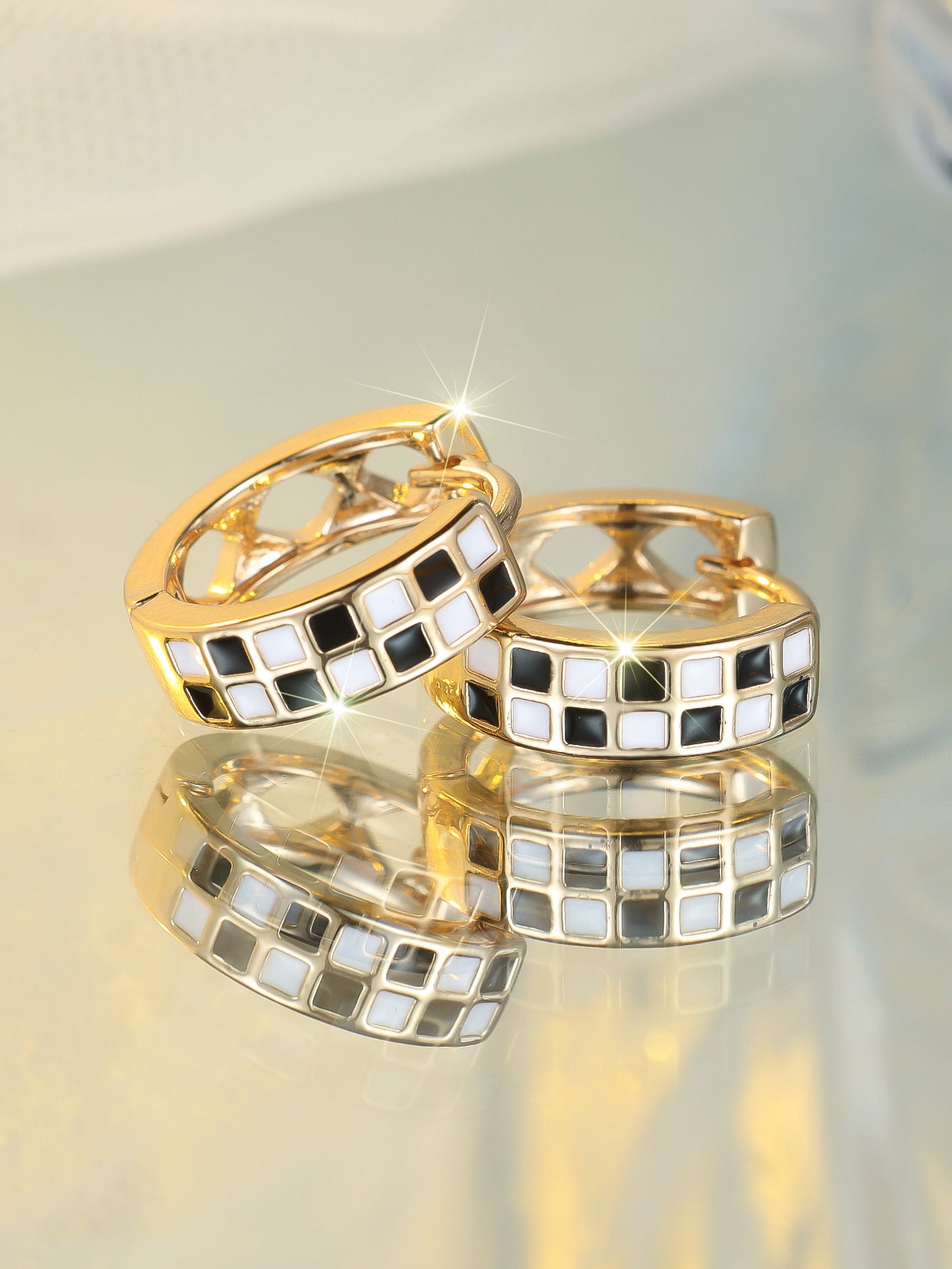 Women's 14K Gold Chessboard Plaid Ear Clip