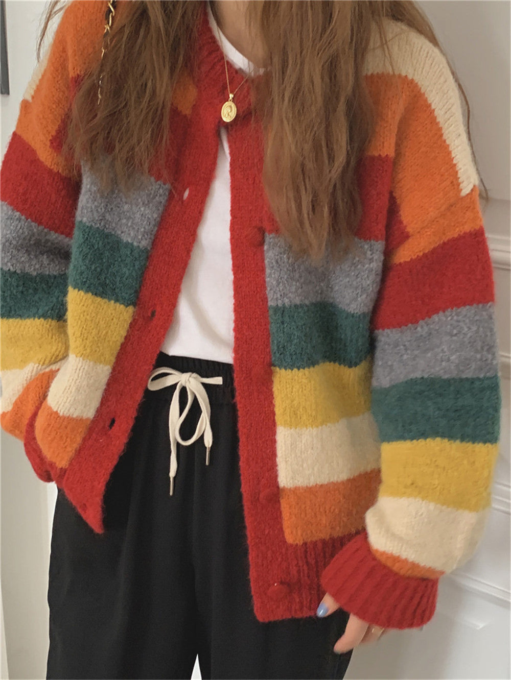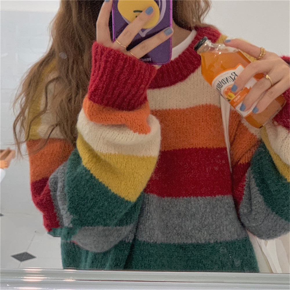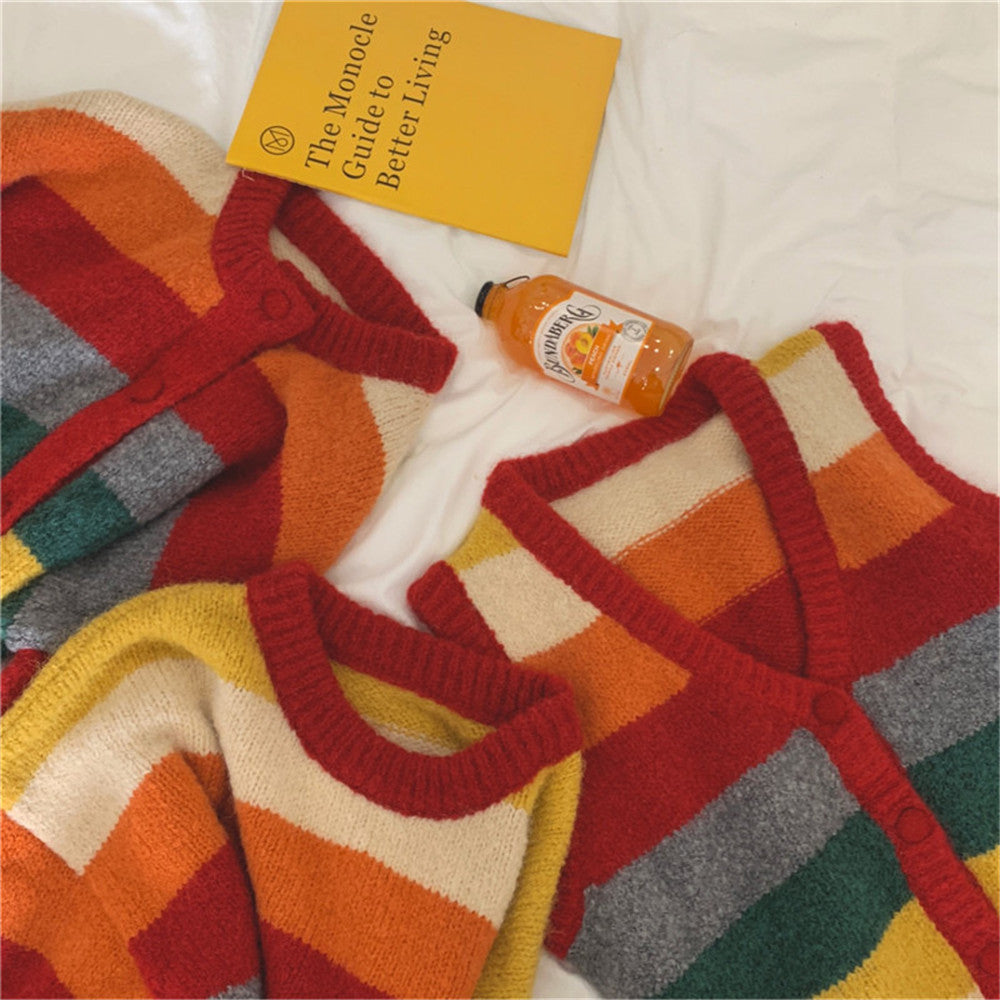 Women's Fashion Personality Rainbow Knitted Cardigan