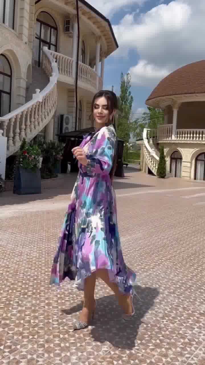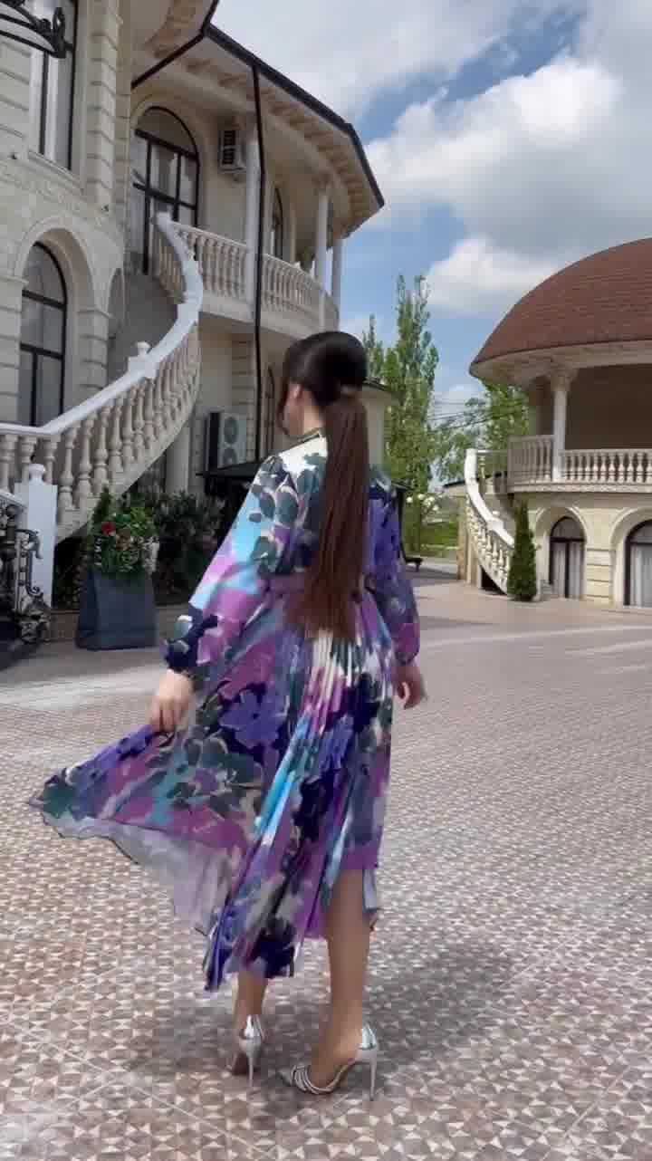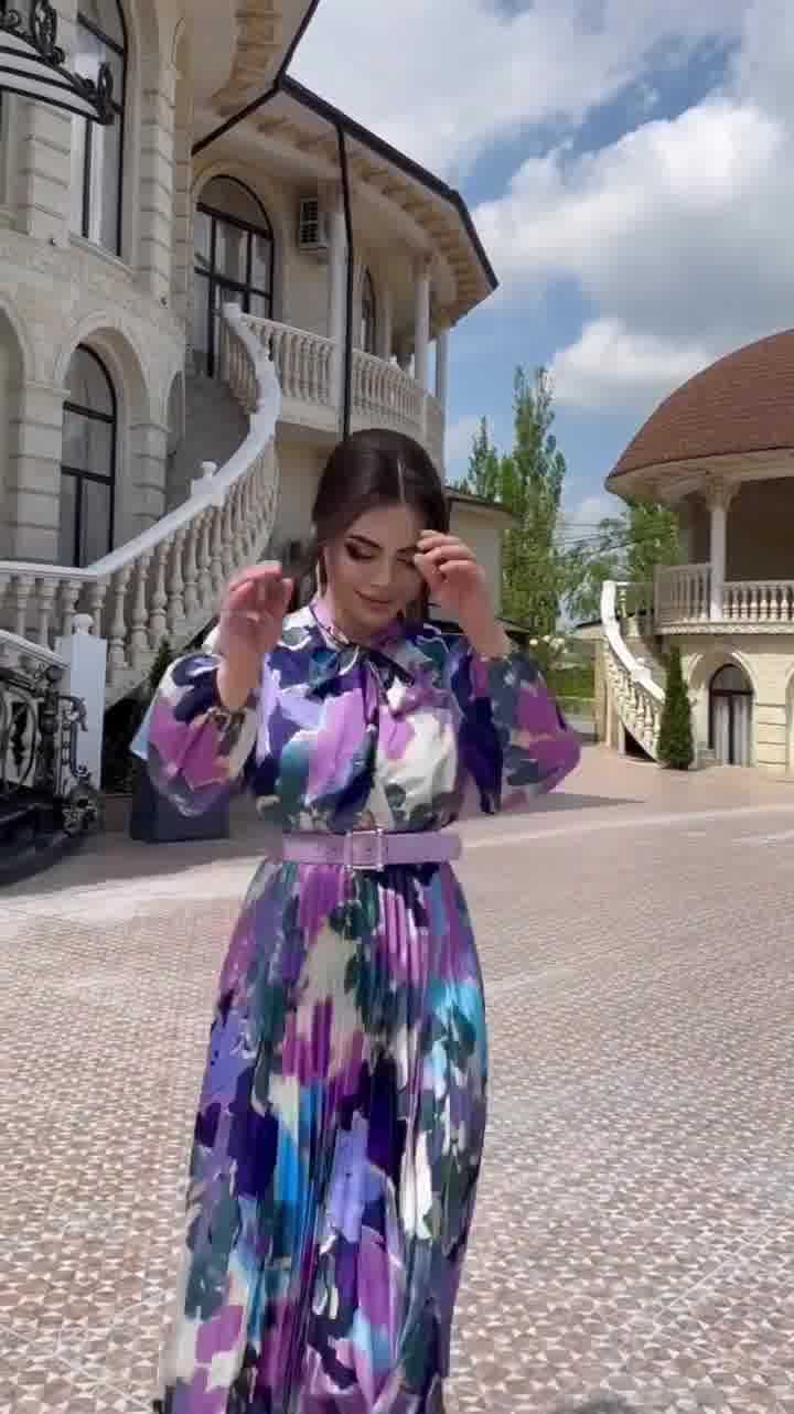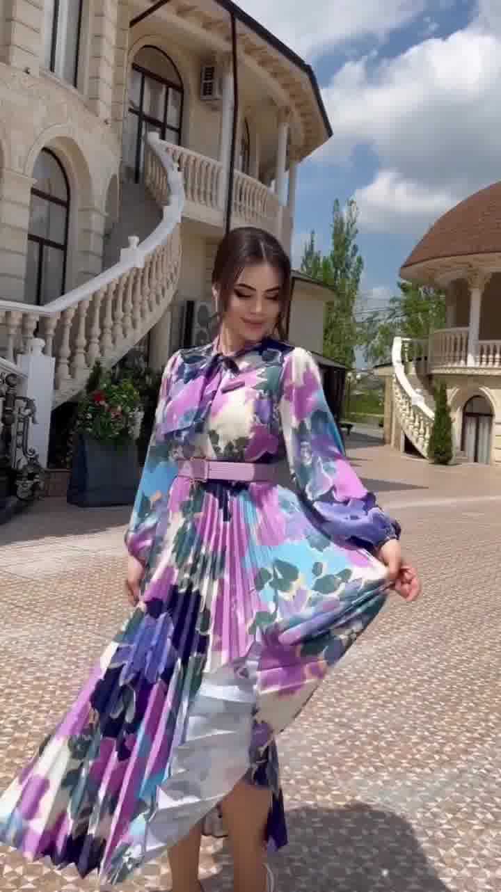 Women's Scarf Collar Graceful Puff Sleeve Waist Trimming Printing Design Sense Dress